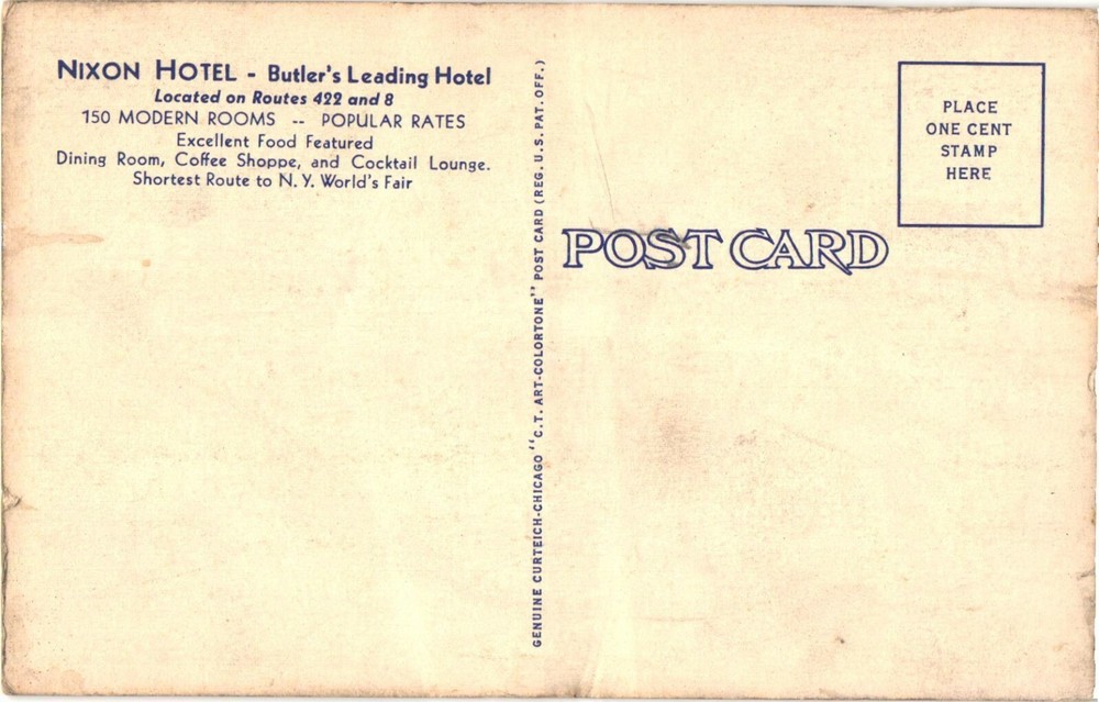View of Monument And Nixon Hotel, Butler's Leading Hotel, Pennsylvania Postcard We sell a wide variety of vintage ephemera, postcards, and other amazing paper collectibles. Please see pictures for condition and email with any questions. Thank you for checking out our items and store: The Vintage Ephemera & Postcards Shop 441-53