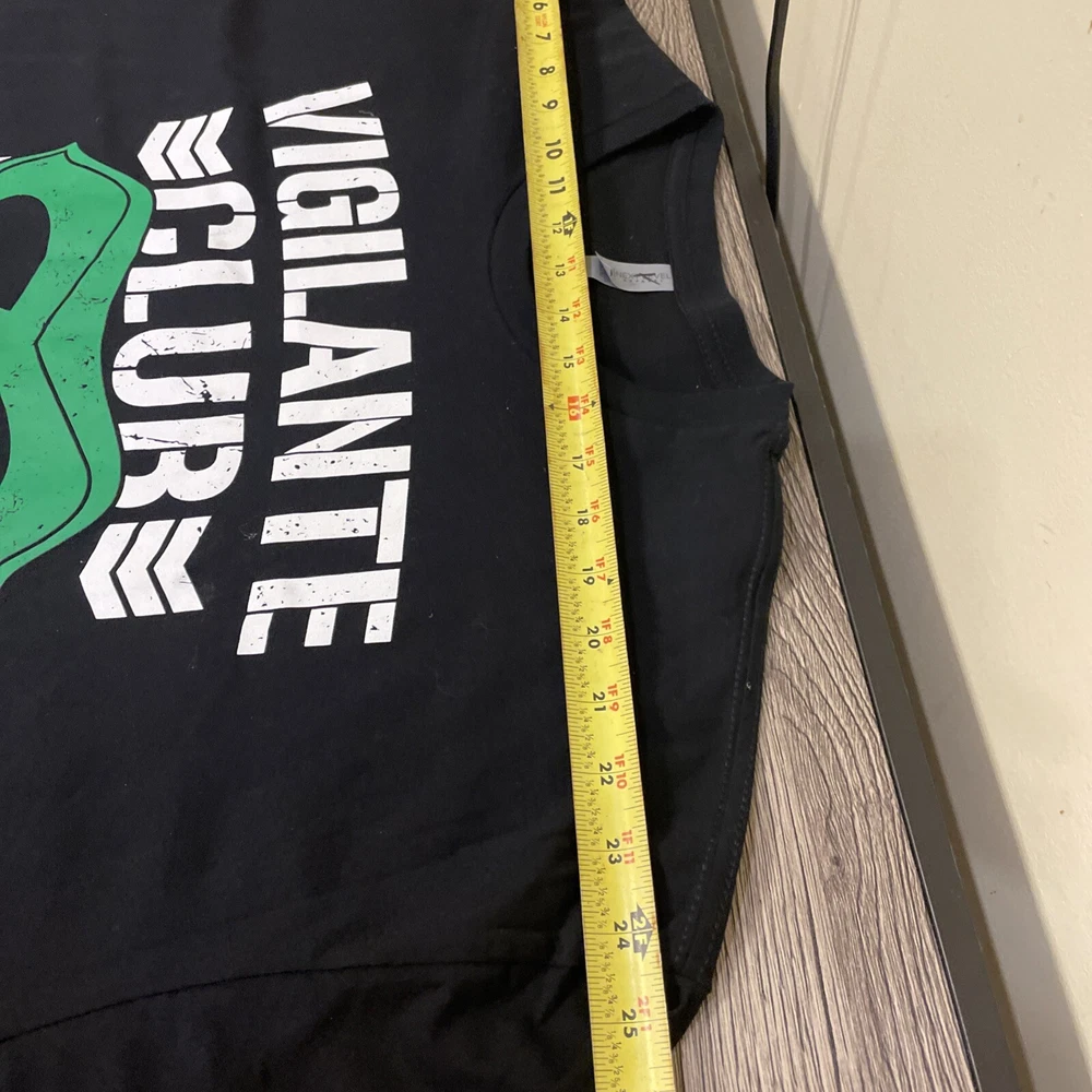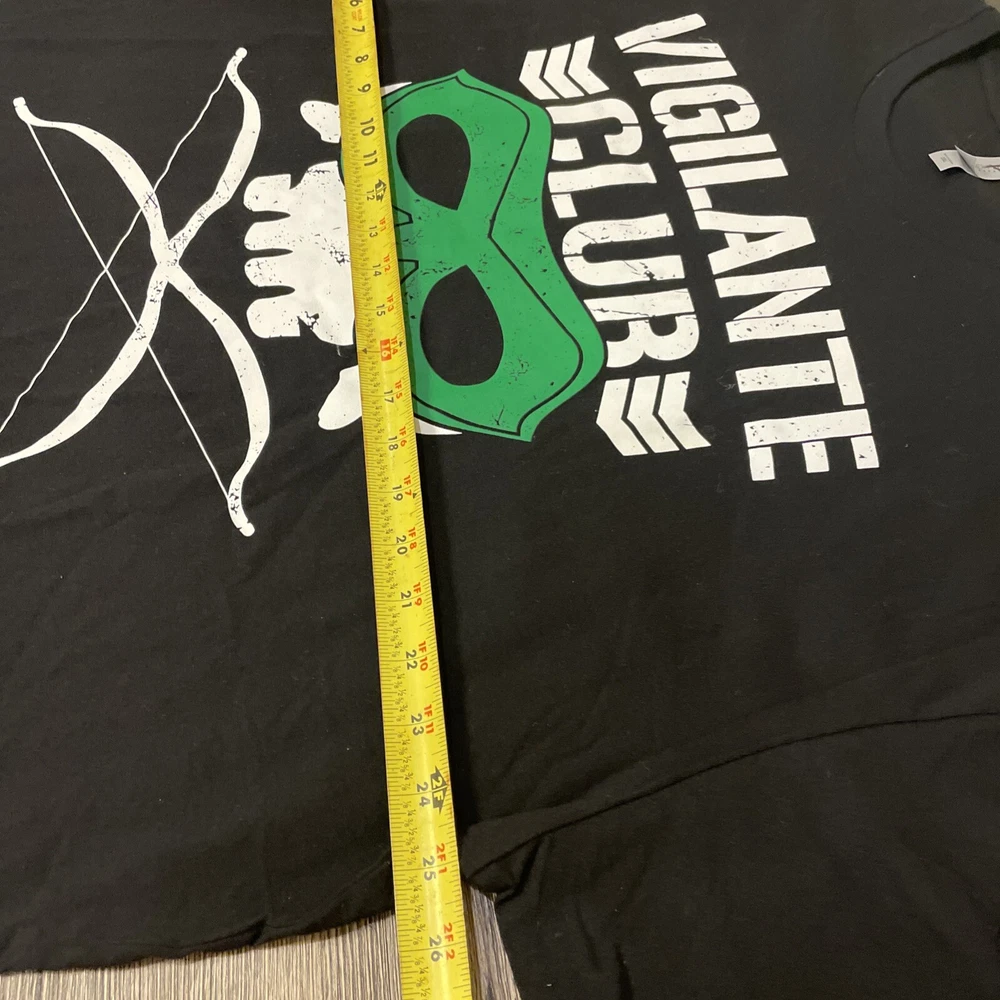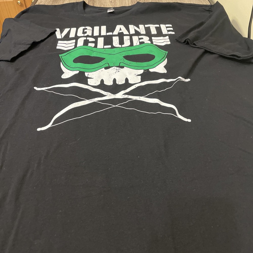 Show off your love for Green Arrow and the Bullet Club with this Vigilante Club T-Shirt. Featuring a graphic print of Stephen Amell, this black cotton t-shirt has a regular fit and short sleeves with a crew neckline. Perfect for casual occasions, this t-shirt is machine washable and made in Cambodia. The shirt is available in size 3XL and is suitable for both men and women. It is a great addition to any fan's collection of DC Comics or wrestling memorabilia. Get your hands on this unique t-shirt from Pro Wrestling Tees today!