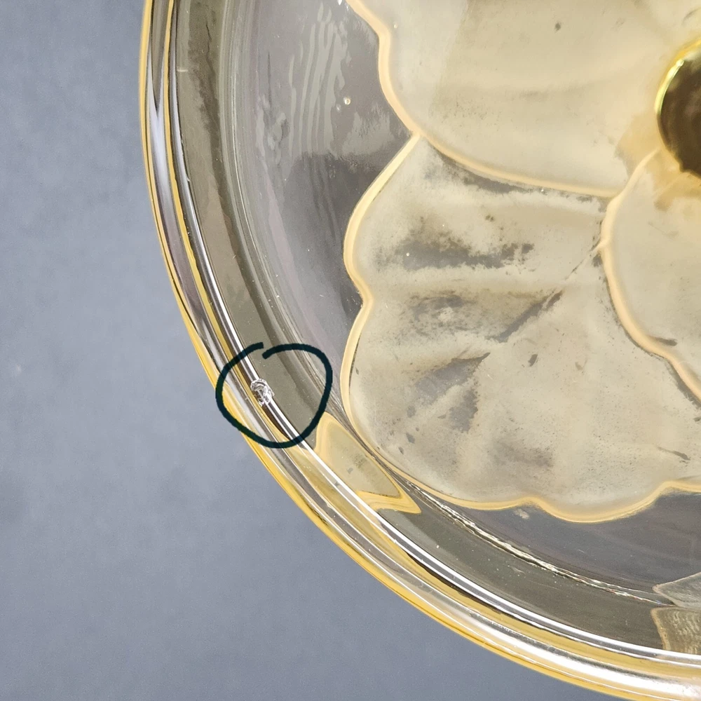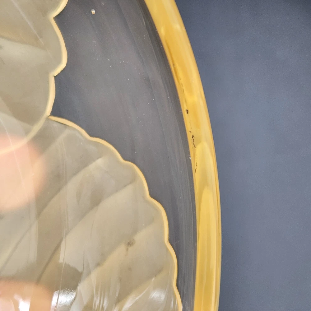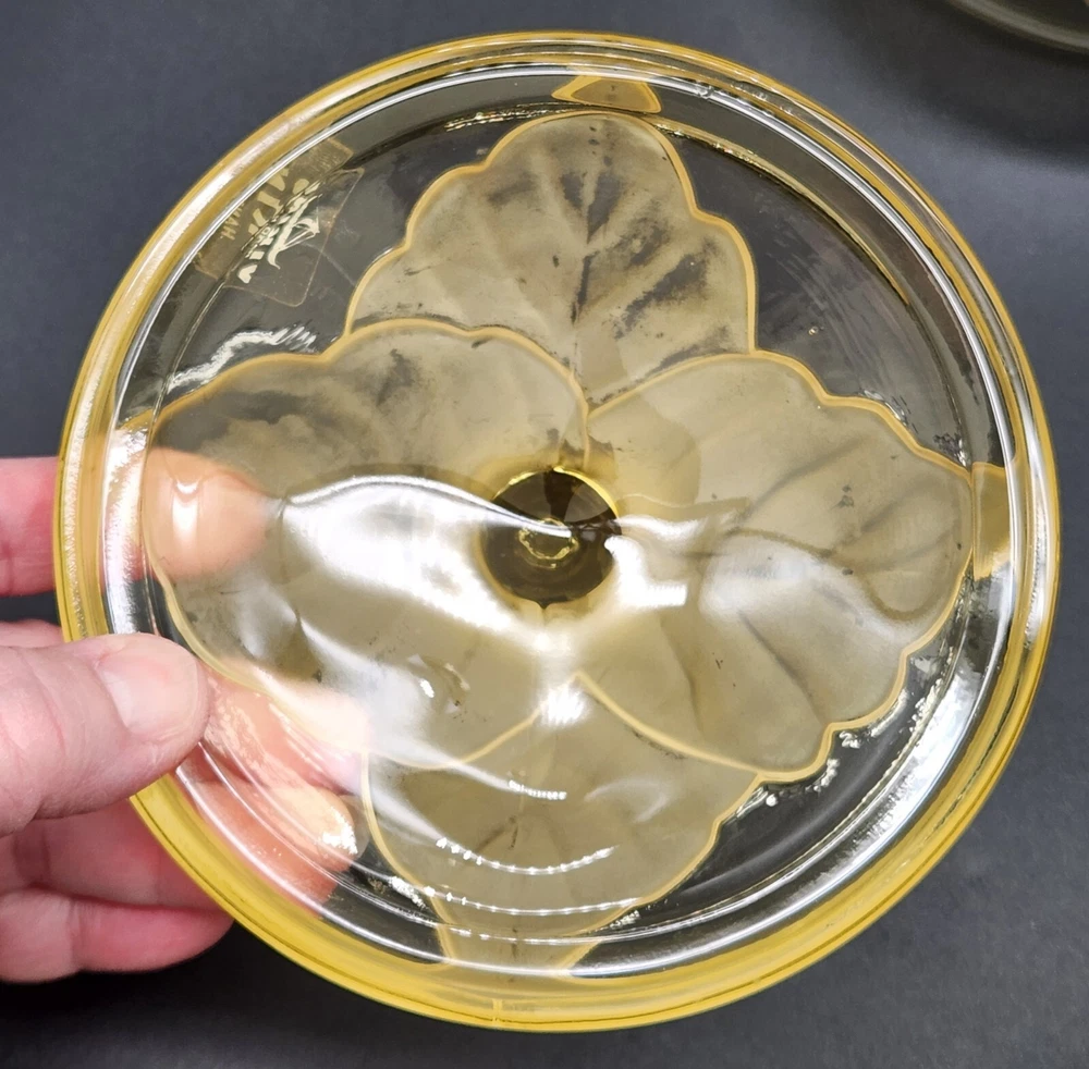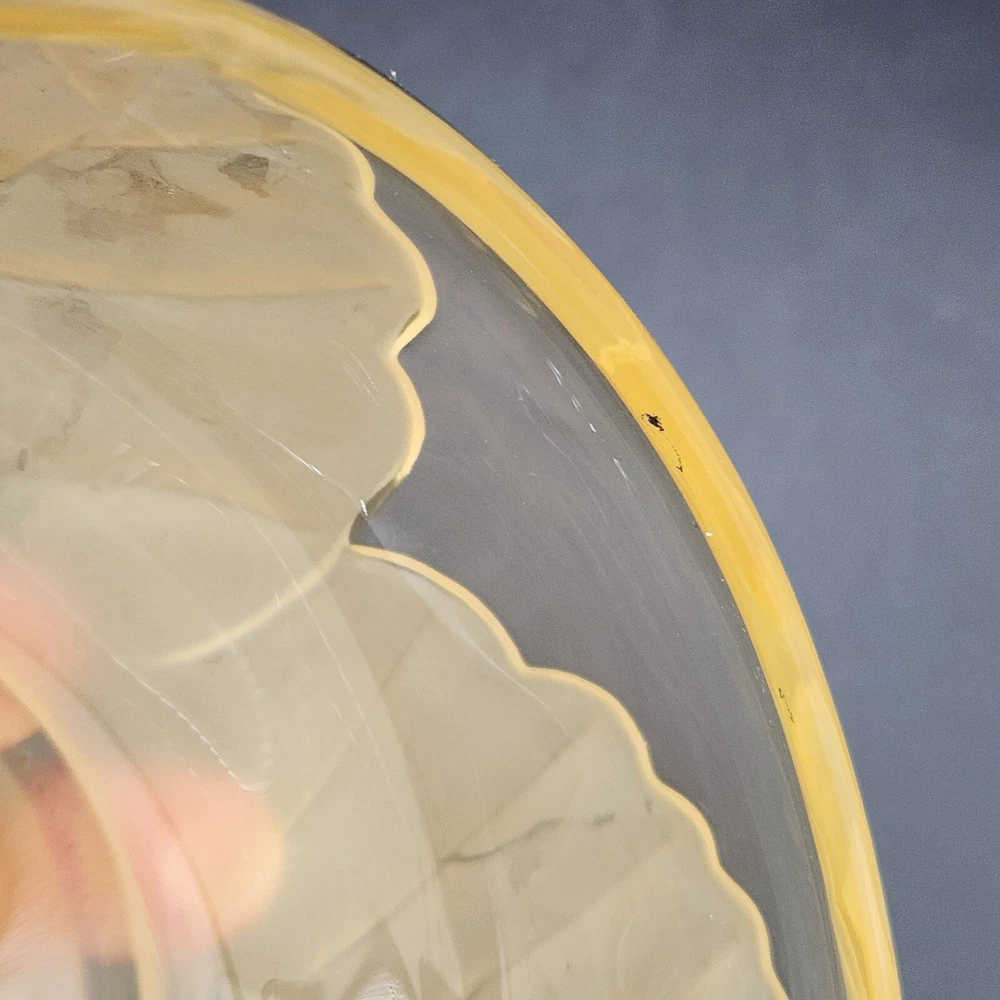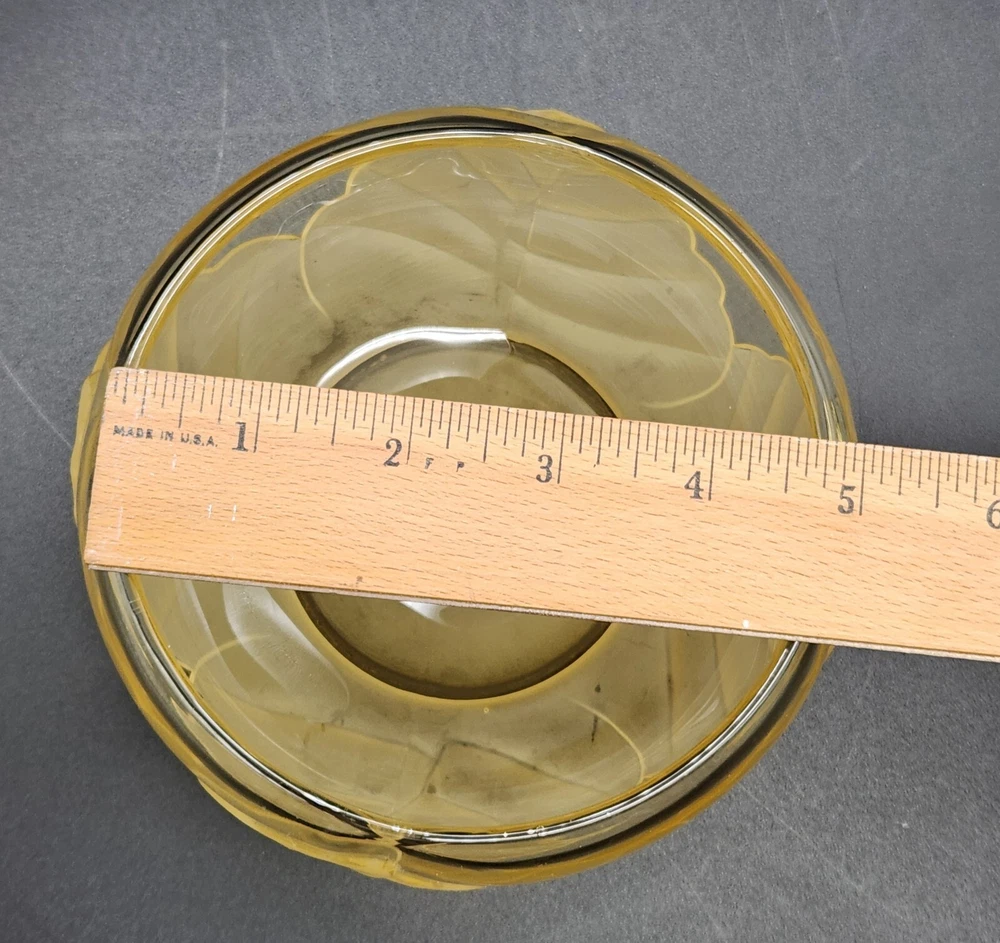 This dish isn't just a vessel—it's a nature-inspired masterpiece, crafted by real Vikings-well, Viking employees. Who knew cabbage leaves could be so classy? Store your plunder or hide your candy stash; either way, it's a keeper. • Hand made glass dish • Cabbage leaf design with lid • Vibrant yellow hue • Intricate detailing Used and in good condition. A fleabite chip on the inside rim of the lid. A few worn areas on the satin finish and some spots in the glass from the blowing process. See photos for details.