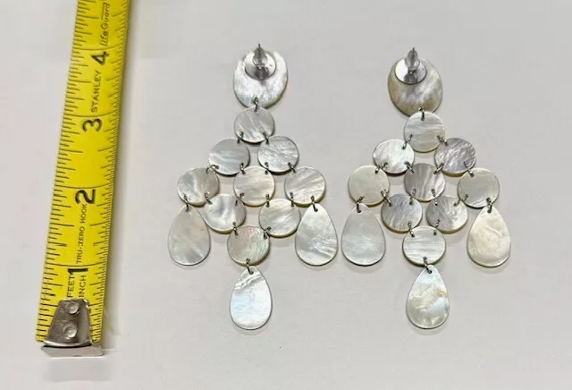 From the Collection of Viktoria Hayman. Get glowing and showing! It’s easy when you wrap up your look with the head-turning radiance of these shell- sun kissed, Mother-of-Pearl Chandelier Earrings, in a stunning Taupe color! The earrings feature round and teardrop-shaped mother of pearl stones in a brilliant iridescent finish. The Lobe Shell is Larger and Oval. They have a post or stud closure and measure 4 inches in length. The design is elegant and timeless, the chandelier style is a classic. The iridescent sparkle of the natural mother of pearl is amazing and the silver tone metal tieing the individual pieces all together adds a touch of sophistication to any outfit. These earrings are ideal for a Bridal Party or Wedding Reception. They would make a Great Gift for the Bride, The Bridesmaids, The Mother of The Bride, The Maid Of Honor and even The Wedding Guests. Having Bachelorette Party- Make the night sparkle!!!! These earrings are normally $155.00 each pair- you can see the price on line. We are offering a great deal on a bundle of Ten Pairs in white mother of pearl as well. We will also include packing and shipping. Free USA Shipping!. Local Collection is also available in Boca Raton FLorida. Need more- just ask! Small variations can happen in the product due to the handmade, manual process. Color and finish variations are expected. Cleaning - Use dry cloth, preferably cotton, to prevent surface scratches. Avoid tumbling and prolonged contact with alcohol, perfume, cosmetics and salt chlorinated water.