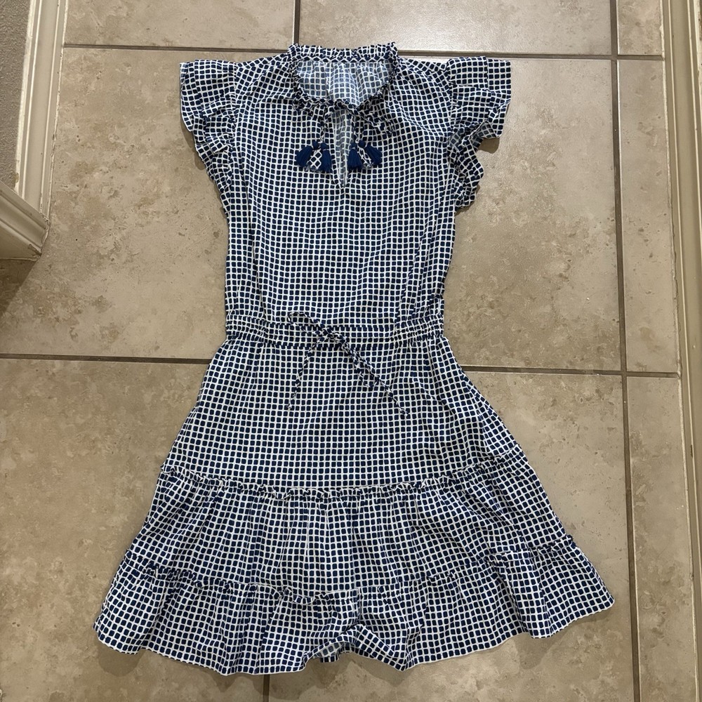$ 89.24Chelsea & Violet Elegant Blue and Cream Lined Dress. Size M. Semi sheer sleeves.