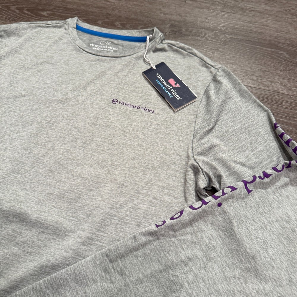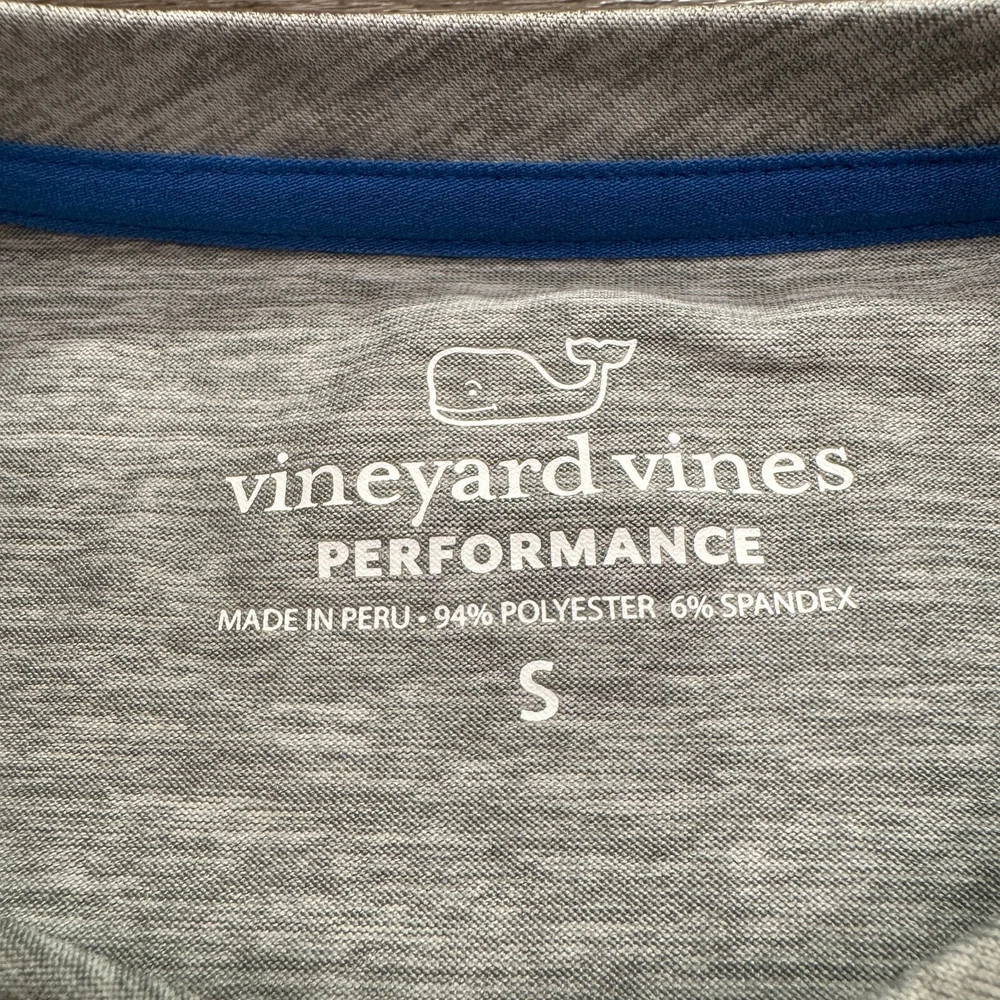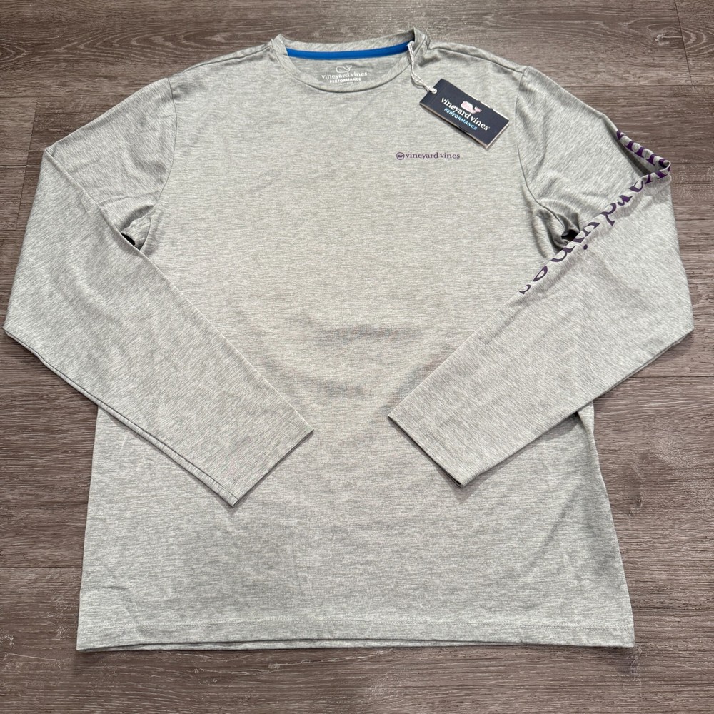 Sleeve Length: Long Sleeve Theme: Shark Color: Gray Material: Polyester Blend, Spandex Neckline: Crew Neck Style: Basic Size: S Brand: Vineyard Vines Closure: Pullover Fit: Regular Features: Breathable, Easy Care, Moisture Wicking Type: T-Shirt Performance/Activity: Athleisure, Baseball Occasion: Activewear Size Type: Regular Department: Men Pattern: Solid