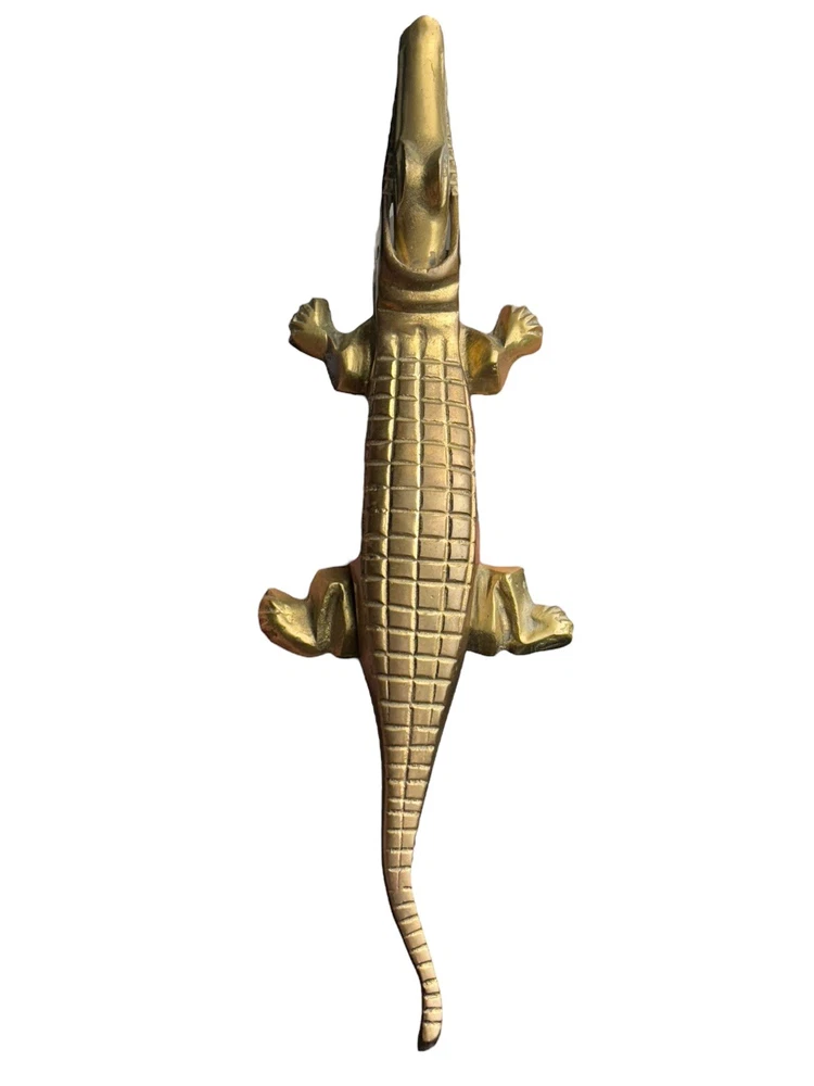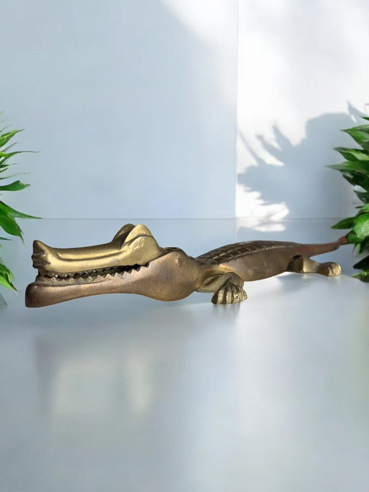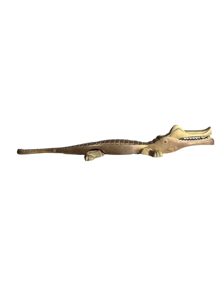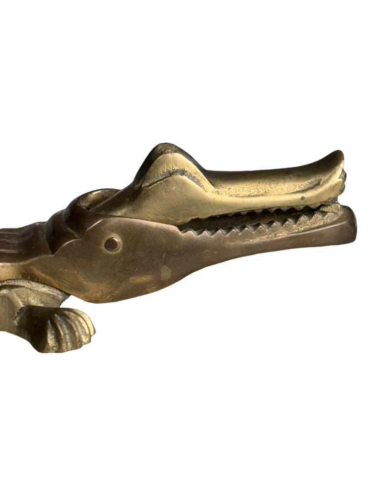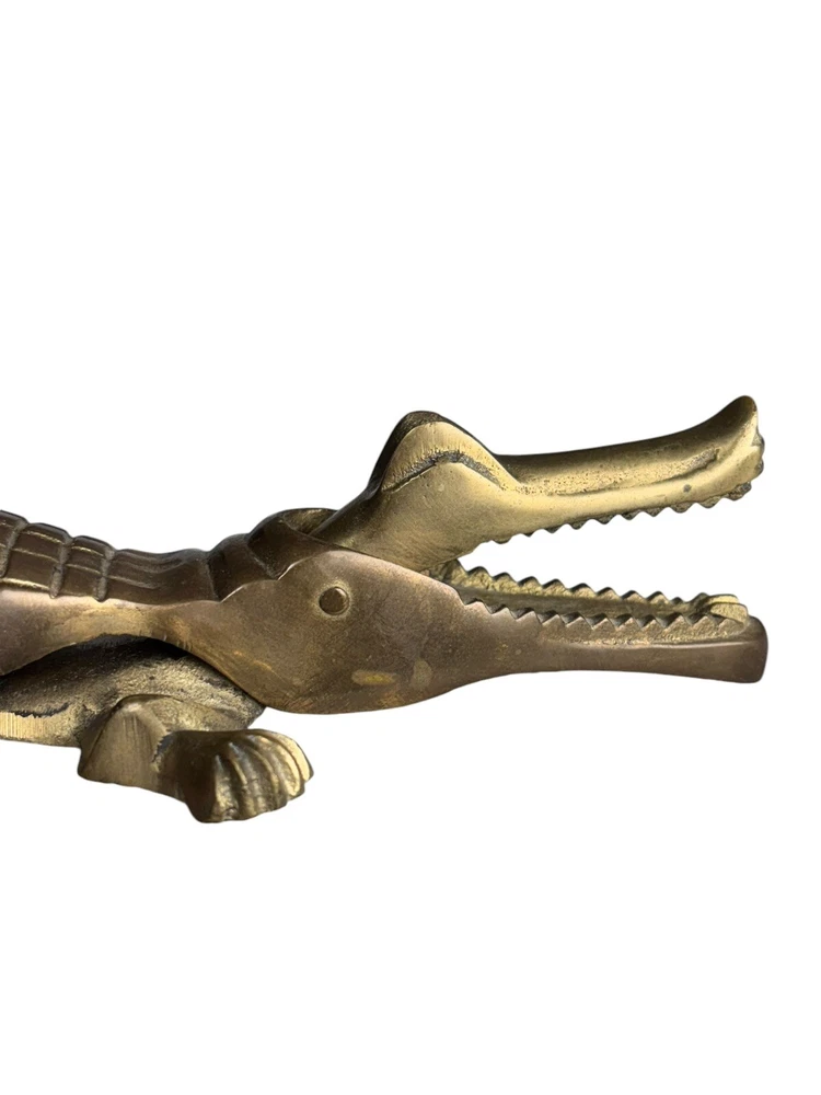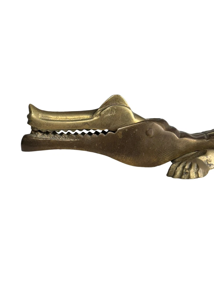 Vintage 11” Solid Brass Alligator/ Crocodile Nut Cracker