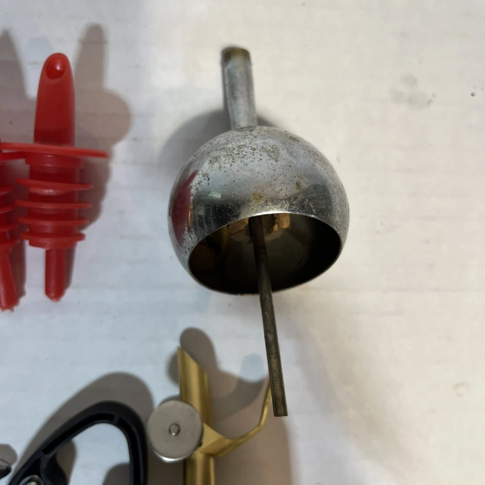 Vintage bar items in great condition some are newer wine stops, pouring tops corkscrew bottle opener excellent set