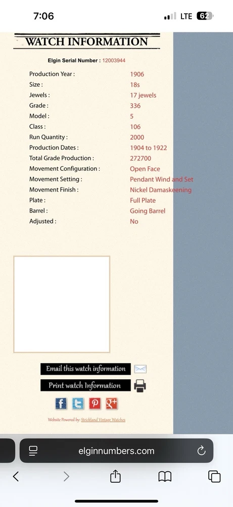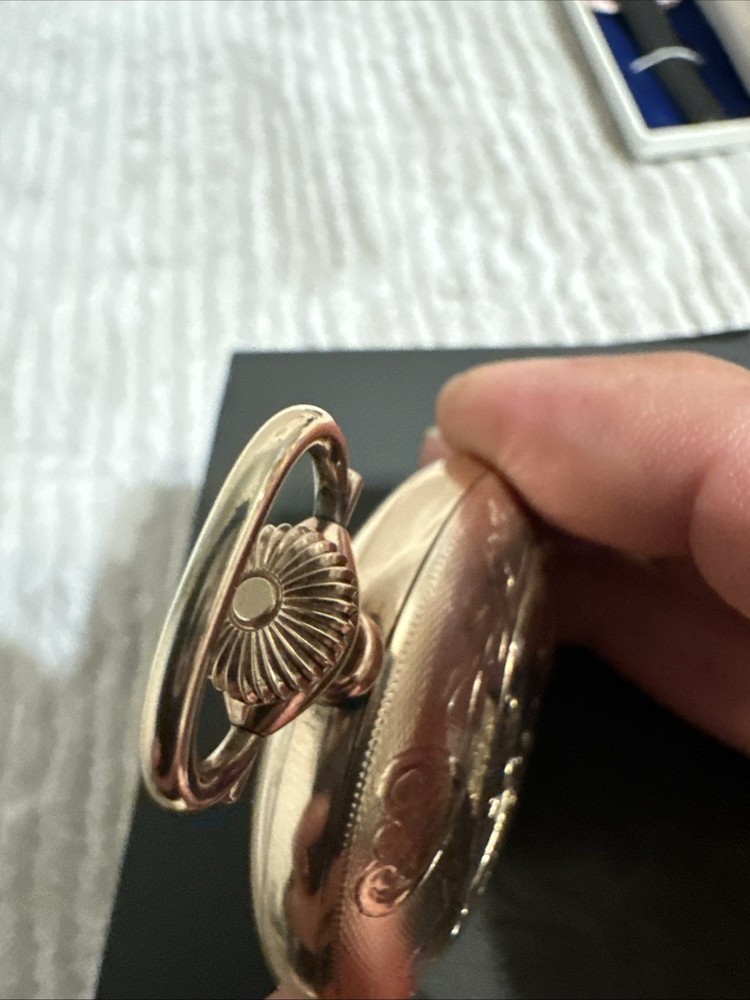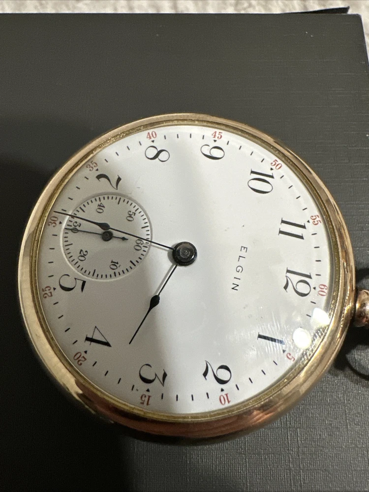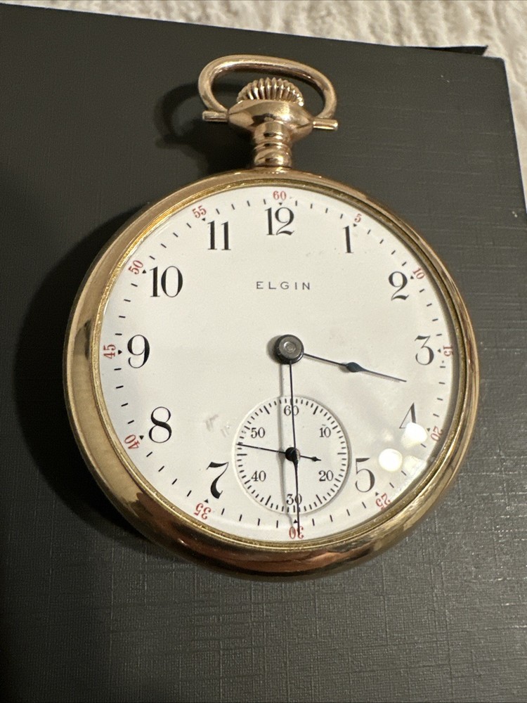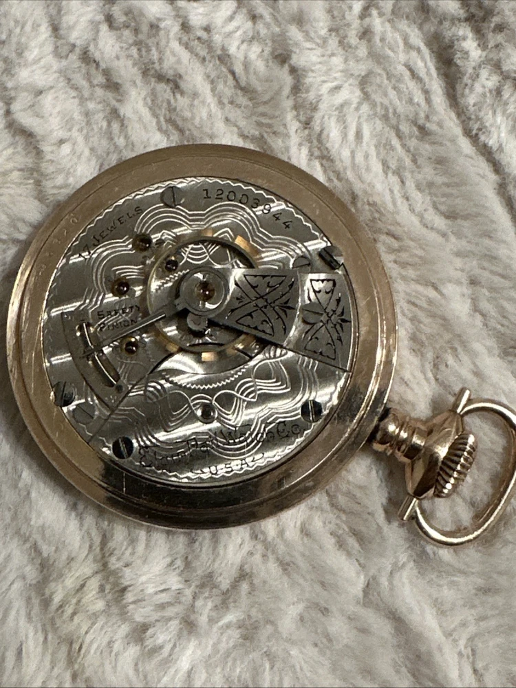With Original Box/Packaging:NoCase Material:Gold PlatedMovement:Mechanical (Manual)Caseback:ScrewbackClosure:Threaded Face and BackFeatures:12-Hour Dial, Seconds HandVintage:YesIndices:Arabic NumeralsModel:5Display:AnalogEscapement Type:NaWater Resistance:Not Water ResistantDepartment:MenCountry/Region of Manufacture:United StatesBrand:ElginType:Pocket WatchPocket Watch Size:18Case Color:SilverYear Manufactured:1904 - 1922With Papers:NoStyle:Dress/FormalNumber of Jewels:17 JewelsMPN:NaDial Color:White