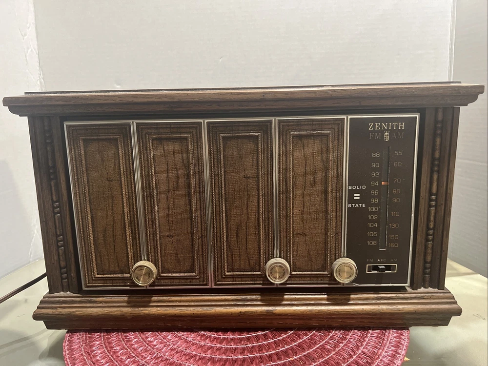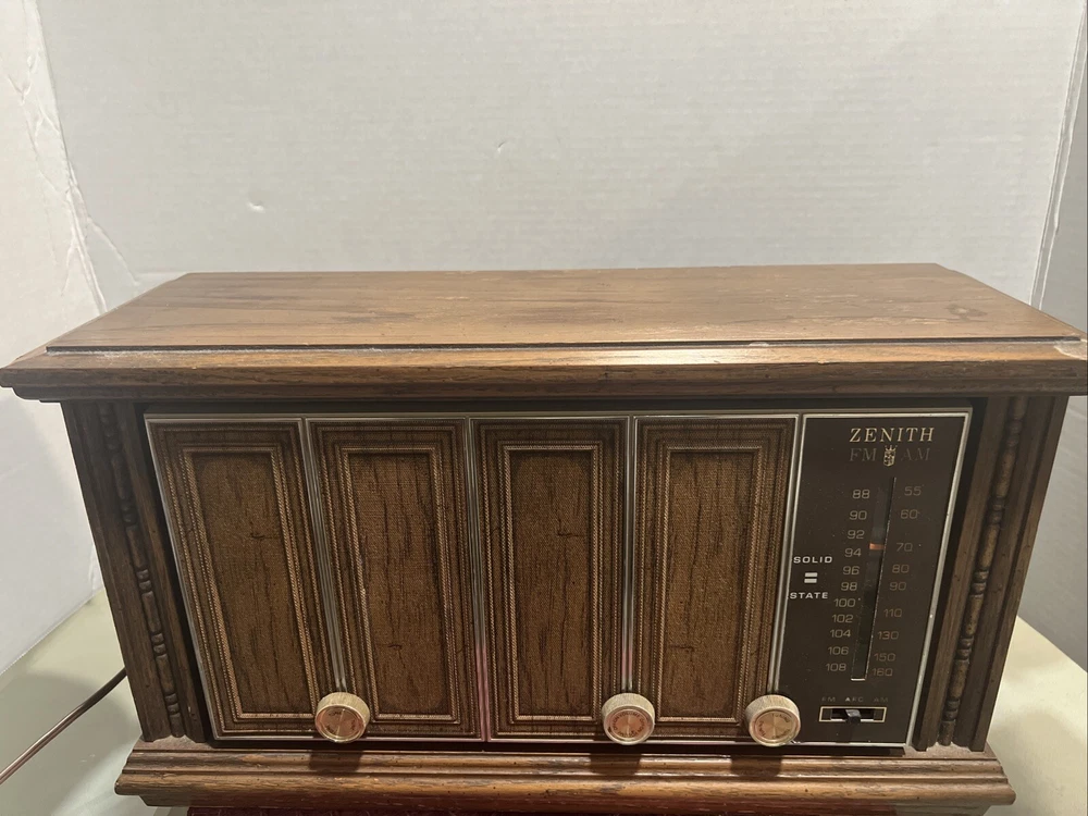 This is a vintage Zenith desktop cabinet radio from the 1950s, manufactured in the United States. It is a tube radio that is in working condition. In great working condition condition Look at the pictures before making your purchase