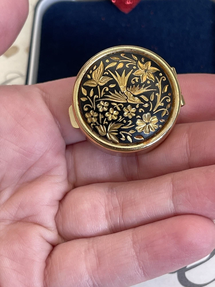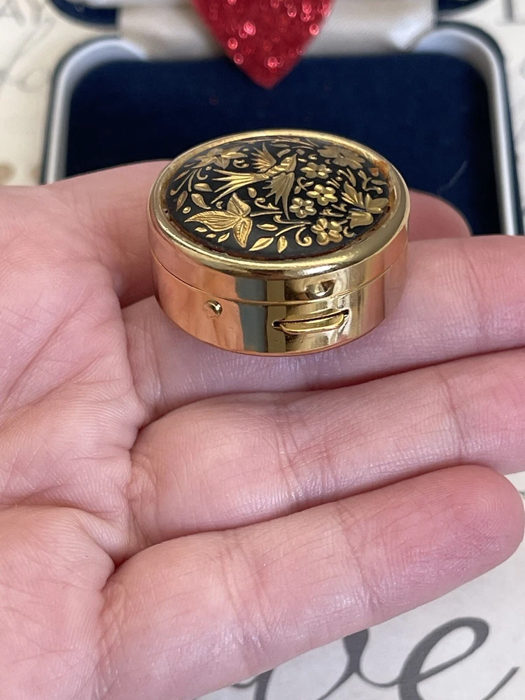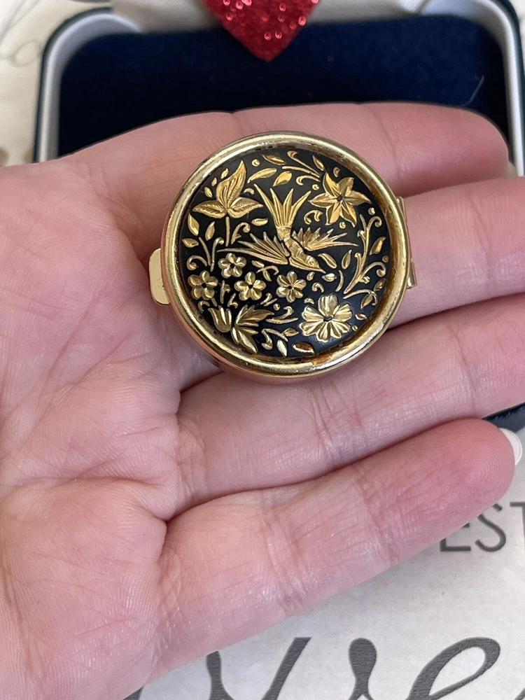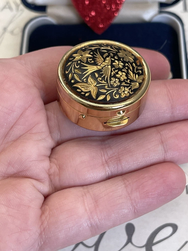 pill box Bird w Flowers Gold Color vintage 1950s-1960s Rare For Collection Good condition! Please ask any questions prior to purchase. Pictures are provided as part of the description, and all measurements are to be considered approximate. Reasonable offers will be considered. Payment must be made within two days of purchase. Fast shipping! Always pack very carefully in box! Photos are accurate! Thank you!