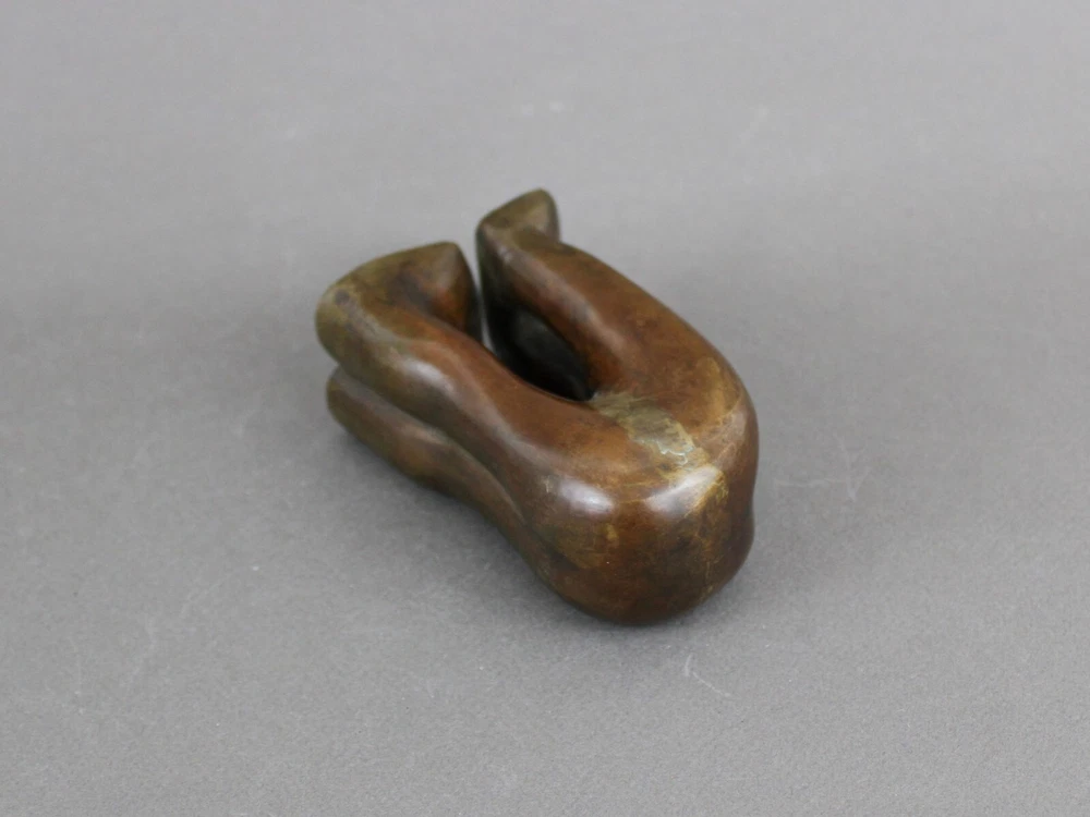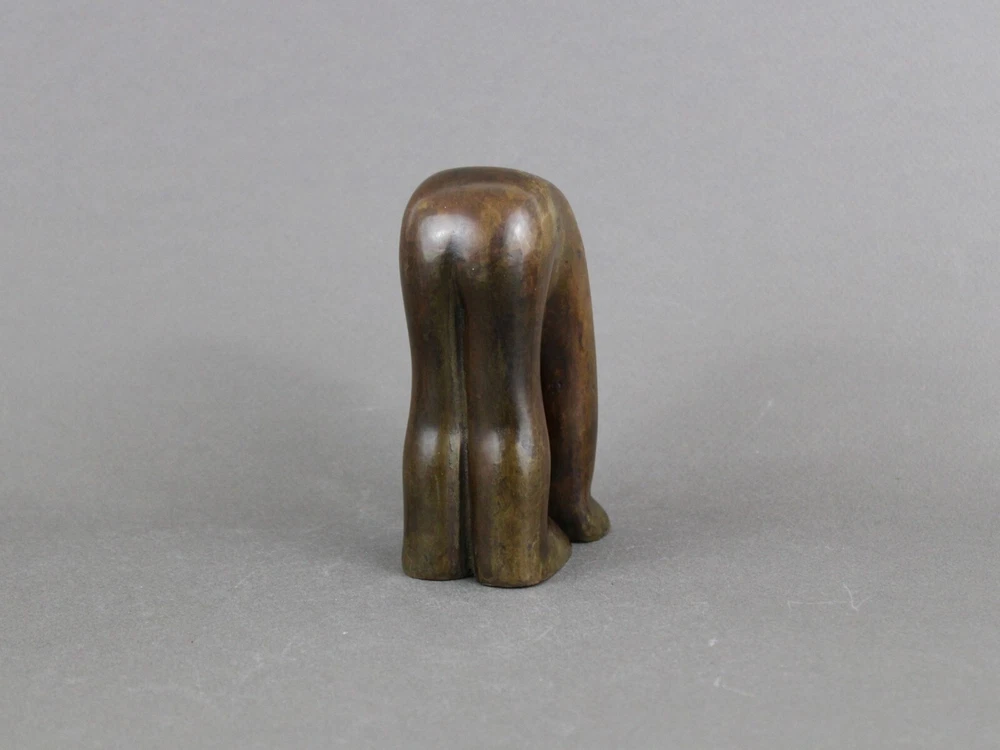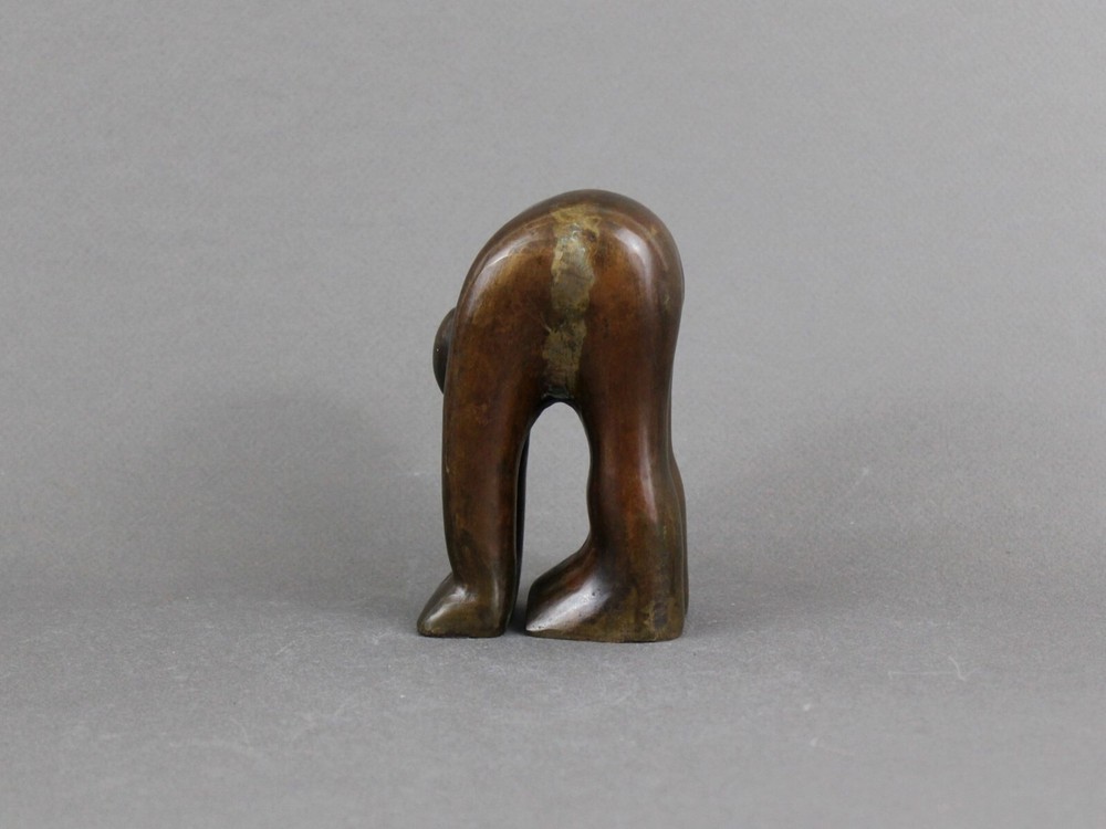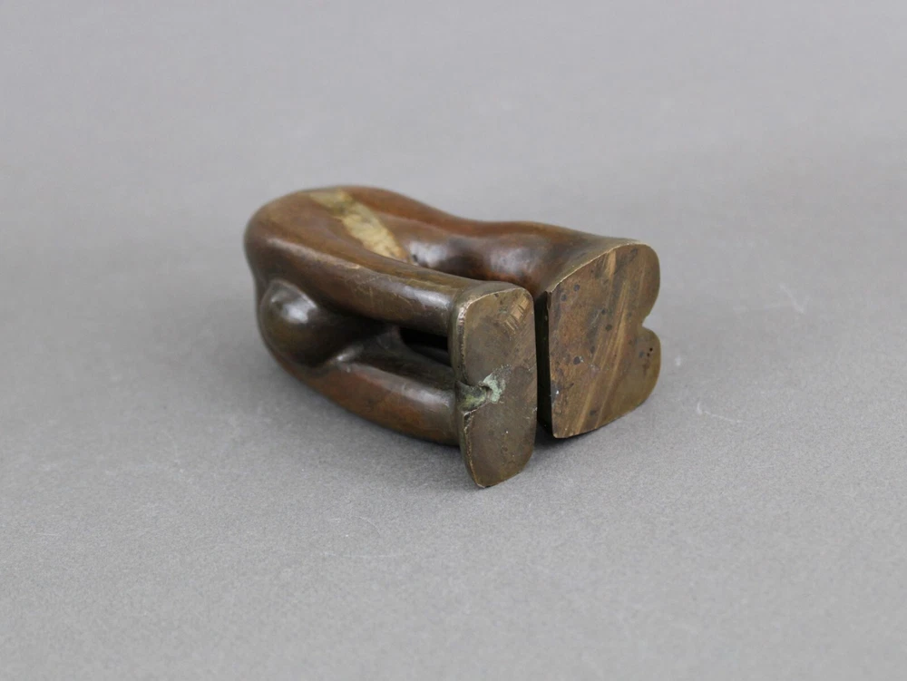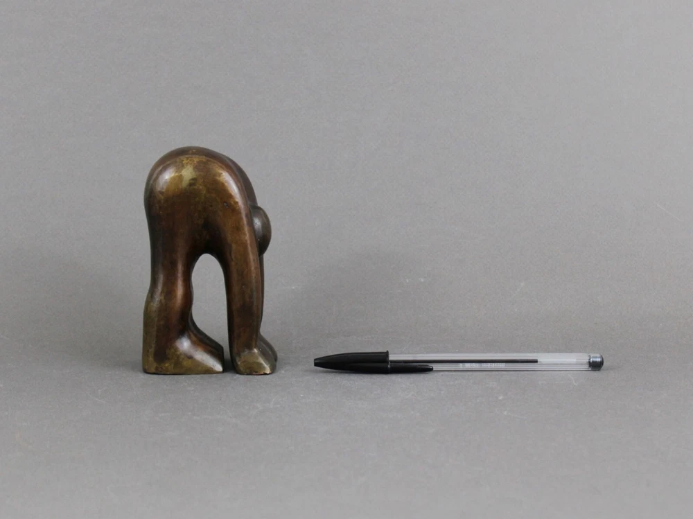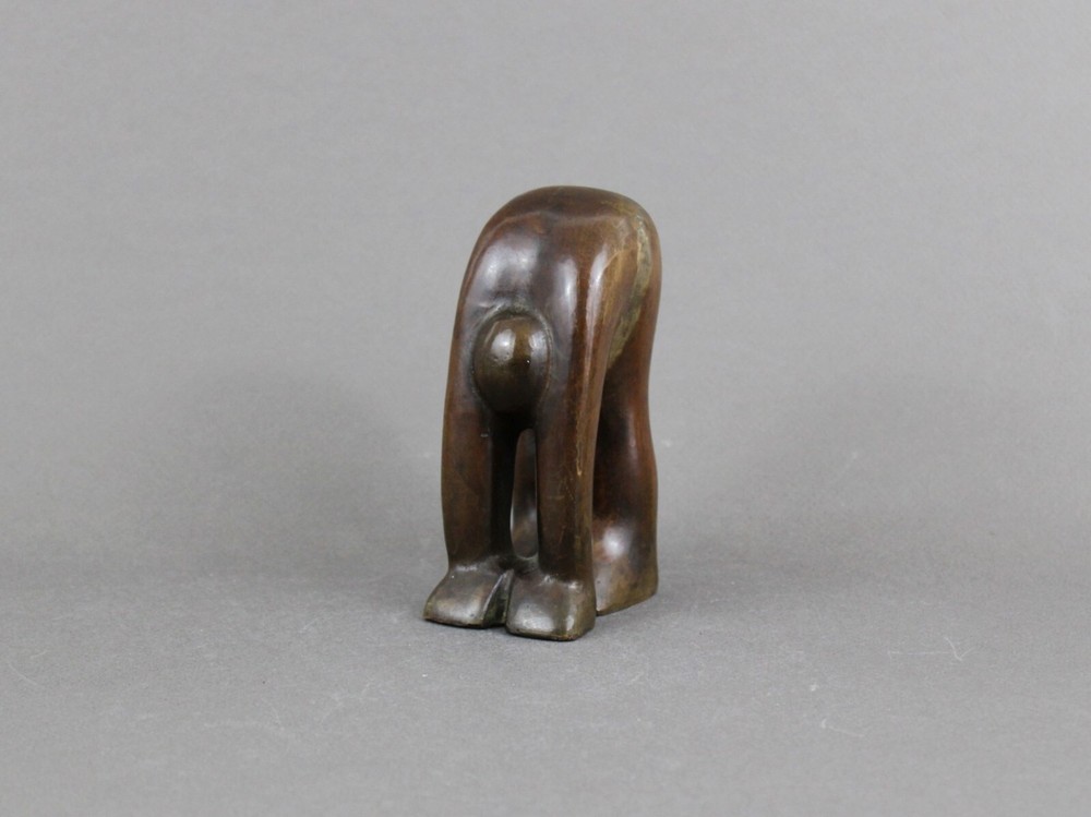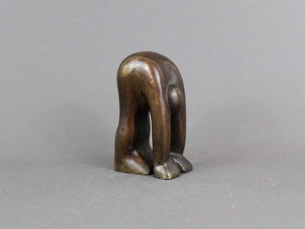 1. DESCRIPTION Vintage abstract sculpture of a figure leaning forward, circa 1960s. The heavy art object is made of bronze with a brown patina. There is no signature or inscription. 2. CONDITION There is large lighter stain on the sculpture, as if the piece had been wrapped with a sleeve which would have left this stain. There is also an oxidation at the underside. Please see photos. 3. DIMENSIONS . Height: 11.5 cm / 4.50" . Width: 7 cm / 2.75" . Depth: 4.5 cm / 1.75" . Weight: 1 600 g / 3.530 lbs Discover our other vintage items in our eBay store!