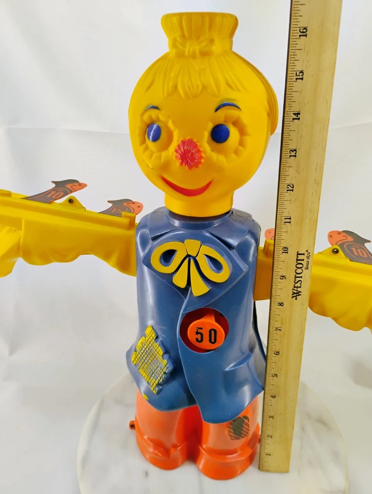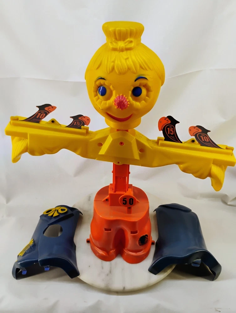 The Ideal Scarecrow Target Game from the 1960s is a vintage plastic toy that offers a unique play experience. With no gun and no hat, players can still enjoy the nostalgic charm of targeting a scarecrow in this classic game. Perfect for collectors or those looking to add a touch of retro fun to their toy collection, this Ideal game is a fun and entertaining addition to any play set. One of the birds is missing a small piece of its body this can be seen in the photos. Thank you for visiting my listing today and thank you for your interest in this item! My goal is to have a pleasant transaction resulting in a satisfied customer. I hope any transaction between us leaves you with a feeling of confidence knowing you can trust me and the items I offer here. *Most if not all my listings are set to accept offers. Feel free to send an offer and I will be happy to consider it!! *Please contact me with any questions or concerns and I will be happy to help. *Always examine the photos carefully, and if in doubt, email me with any questions you may have. *Please note that condition statements are offered as a guide only. They will always be somewhat subjective and reflect our opinion, which may not necessarily agree with someone else's opinion. PLEASE READ: I aim to please and I want my buyers to have a positive transaction with me. If you have questions, concerns, or special requests related to any of my items I hope you will contact me so we can work them out to your satisfaction. I sell my items to give you a great item at a decent price while making a little profit at the same time. If you feel the item you are interested in is too pricey do not hesitate to send me a fair offer and I will consider it. My goal is to satisfy your needs and mine so both parties can benefit. SHIPPING: If you prefer a different shipping method or company please contact me and I will do all I can to make that happen. If you have concerns or requests about the packaging of your item contact me and I will do all I can to accommodate them. Shipping costs are based on location in each state or country, the costs always differ. After I have received your payment I will ship your item out within 3 business days or less excluding weekends and holidays. BEFORE PURCHASING & BIDDING: **Please see all the pictures. I do not have great photography skills but I try to get the most accurate photos I can. If you are unsure about something you see in a photo contact me so I can do what I am able to answer your concern about the item. **I cannot stress enough that if you have any questions or concerns please contact me before purchasing and bidding. Communication can solve so much. **As a customer myself, I understand the meaning of customer satisfaction and my goal is to have nothing but satisfied customers. If you are not unsatisfied with your purchase I ask that you please contact me so I can take care of your issue. My goal is for you to be 100% satisfied. INTERNATIONAL BUYERS WELCOMED - PLEASE NOTE: I welcome International buyers! Please be aware that any custom/duties/taxes that the parcel might incur once it is out of the USA are the responsibility of the buyer. Please check with your country's customs office to determine what these additional costs will be prior to bidding or buying. Please refer to the eBay Site Map for more information if needed.