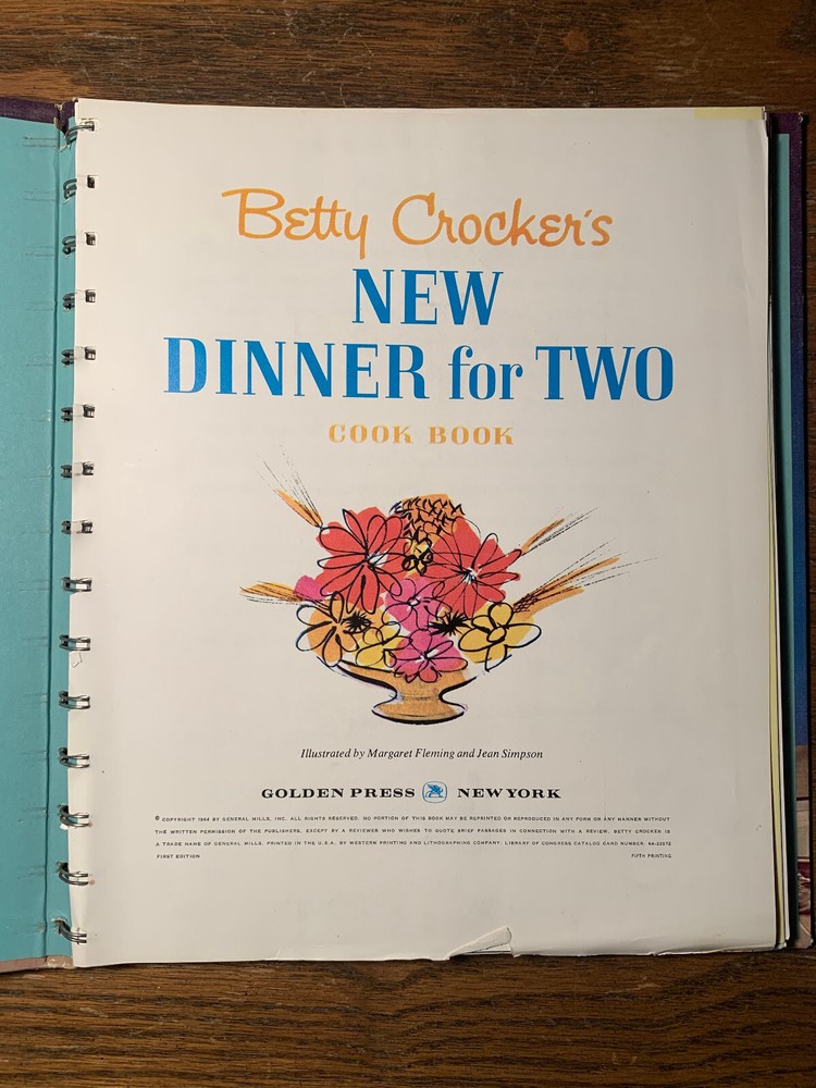 HomeVintage 1964 Betty Crocker Dinner for Two Cookbook 1st Edition