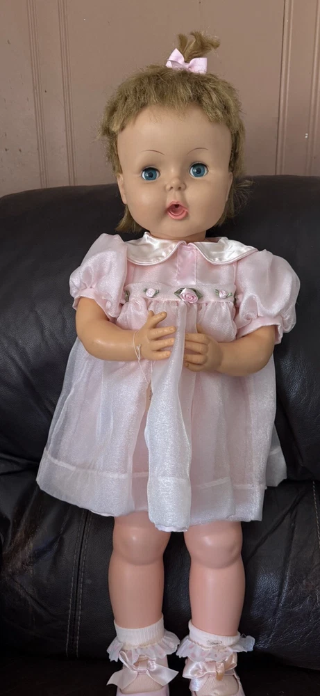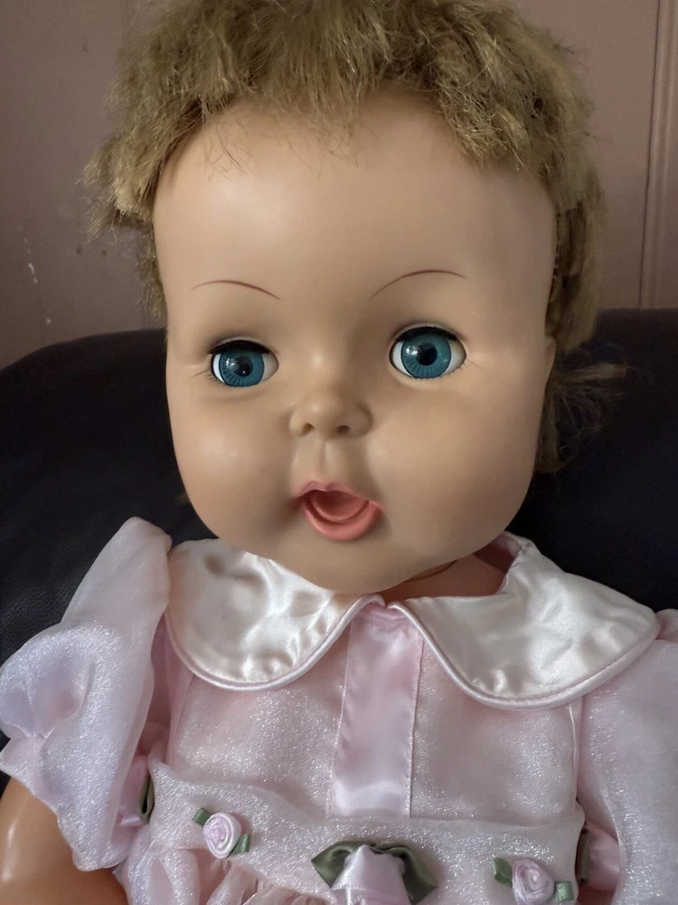 Doll Gender: Gender Neutral Ethnicity: Caucasian Doll Hair Color: Blonde Doll Hair Type: Straight Doll Size: 26-27” Vintage: Yes Country/Region of Manufacture: United States Character: Thirstee Walker Material: Vinyl Doll Eye Color: Blue Type: Baby Doll Theme: Babies Doll Complexion: Light Year Manufactured: 1964 Brand: Horsman Original/Licensed Reproduction: Original