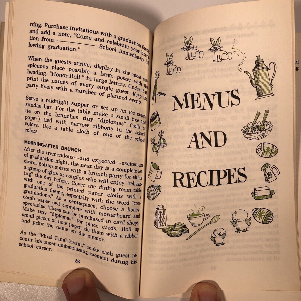 Cook book cookbook rare entertaining manners house parties Hearst corporation printed in USA United States u.s.a. Menus decorations games hostess Book booklet