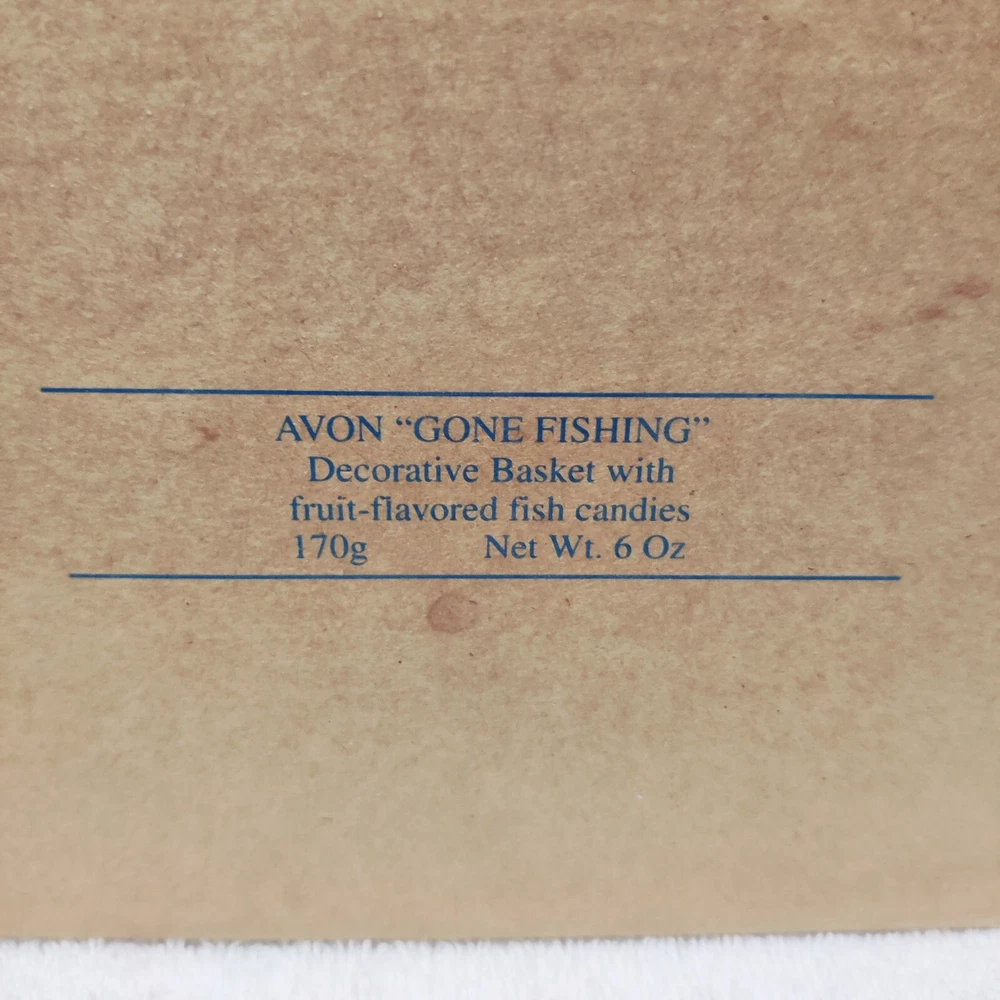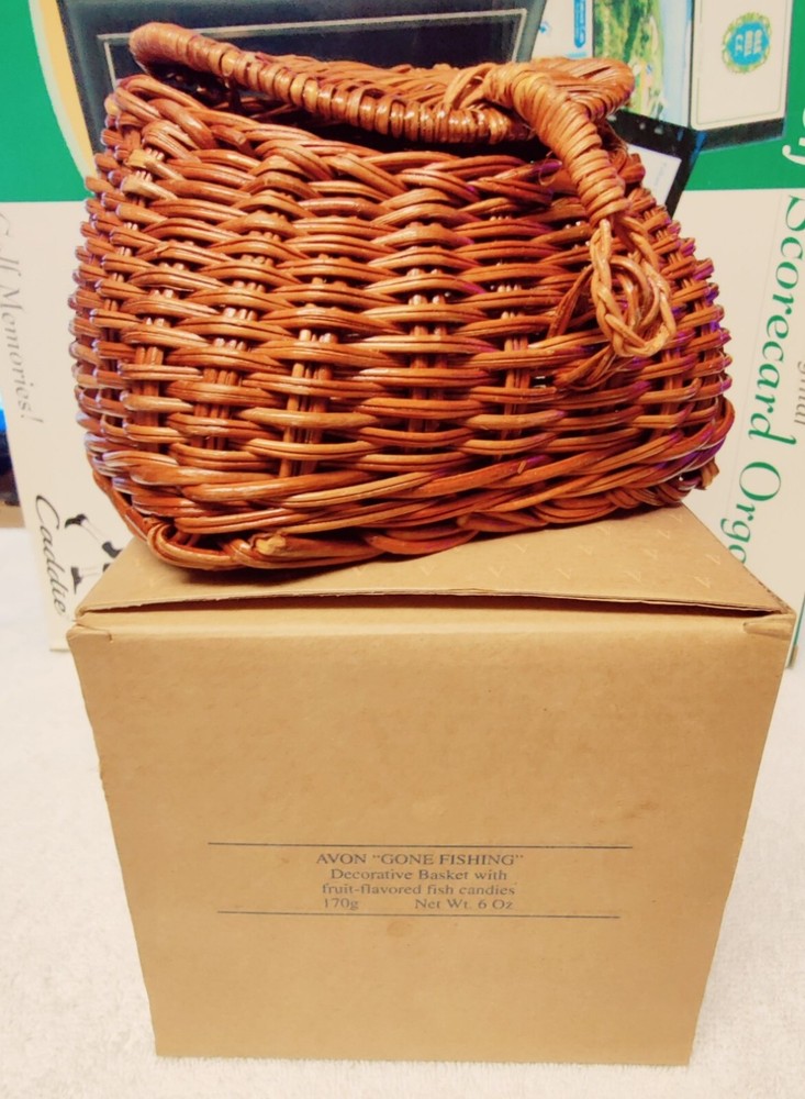 Avon Gift Collection "Gone Fishing" Wicker Basket **Wicker Basket and Original Box Only Avon "Gone Fishing" decorative basket, which originally came with fruit-flavored fish candies . Avon also had a "Gone Fishing" aftershave bottle in the 1970s
