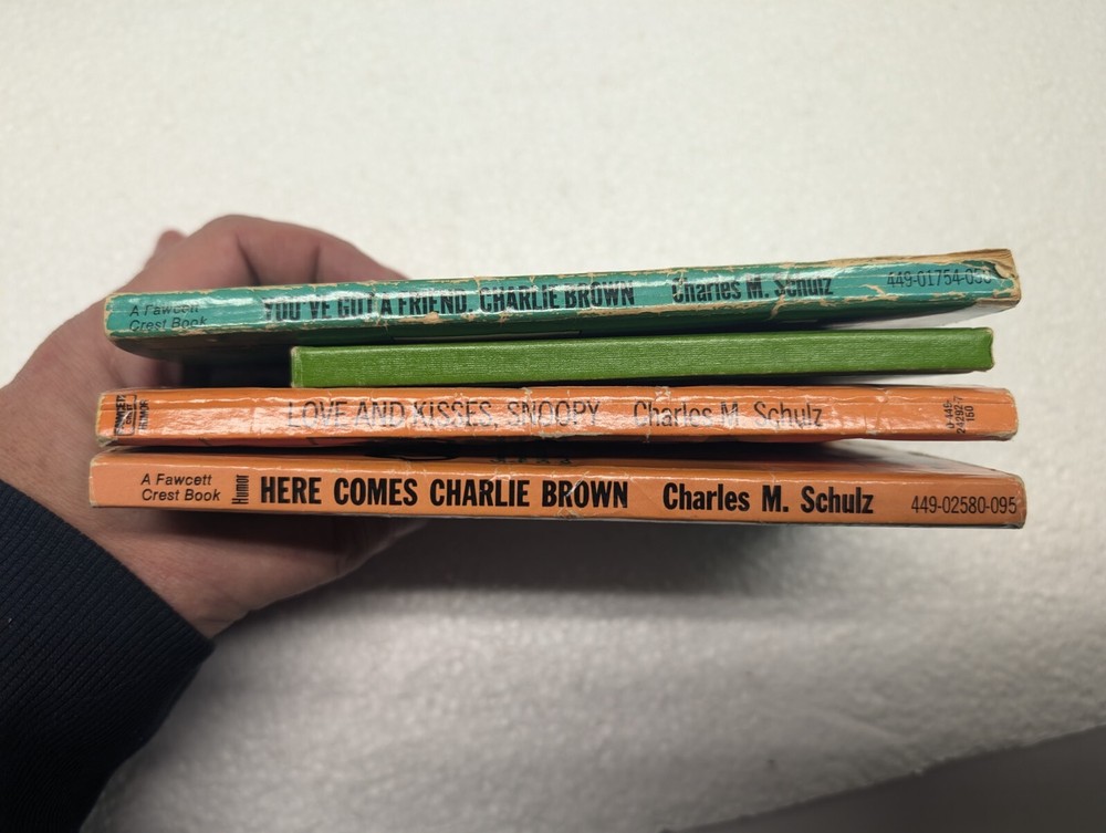 Vintage 1970s Fawcett paperback books featuring the beloved PEANUTS characters, Charlie Brown and Snoopy. This lot of 4 books by Peanuts creator Charles Schulz is a must-have for fans of the iconic comic strip series. Published in English, these classic comics offer a nostalgic glimpse into the era of the 1970s, making them a perfect addition to any collection. Each book is illustrated with Schulz's signature style, capturing the essence of the Peanuts gang in their humorous and heartwarming adventures. Ideal for book lovers and comic enthusiasts alike, this set of vintage Peanuts books is a charming find for anyone looking to revisit the timeless world of Charlie Brown.