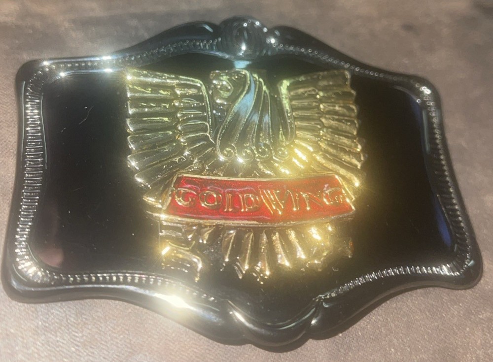 Elevate your wardrobe with a touch of classic motorcycling flair through this vintage 1970s Honda Goldwing belt buckle. Designed for the enthusiast who appreciates timeless style, the buckle features a robust brass-plated finish with striking enamel inlays and overlay that capture the essence of the iconic Honda Goldwing motorcycles. Its solid pattern and versatile design make it suitable for a variety of belts up to 1.80" in width. Crafted in the United States, this true vintage piece bears the mark of quality and durability. The buckle's dimensions are a perfect statement piece, measuring 3.65" wide by 2.75" high, ensuring it stands out in any collection. Whether you're accessorizing for a ride or adding to your vintage attire, this belt buckle is a subtle nod to the rich history of motorcycles and fashion.