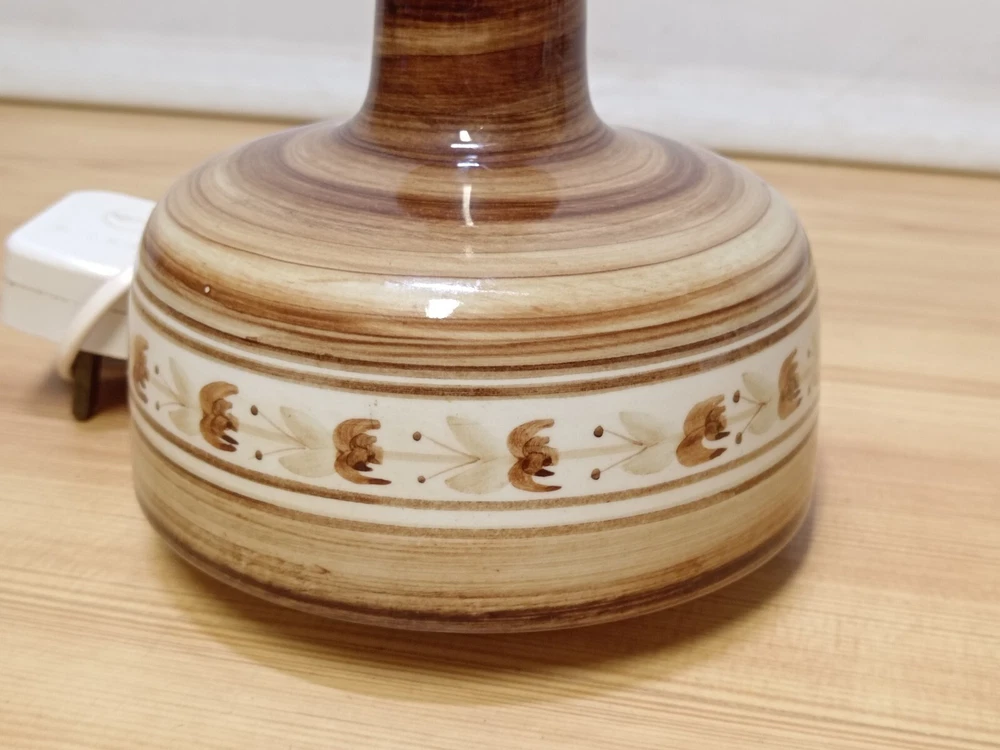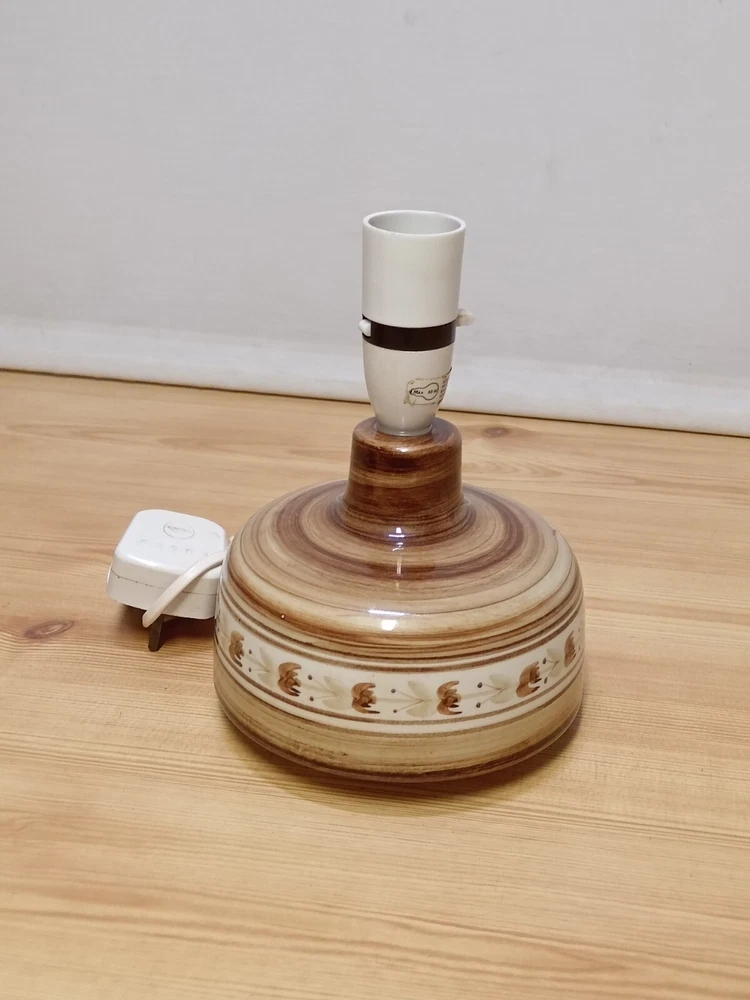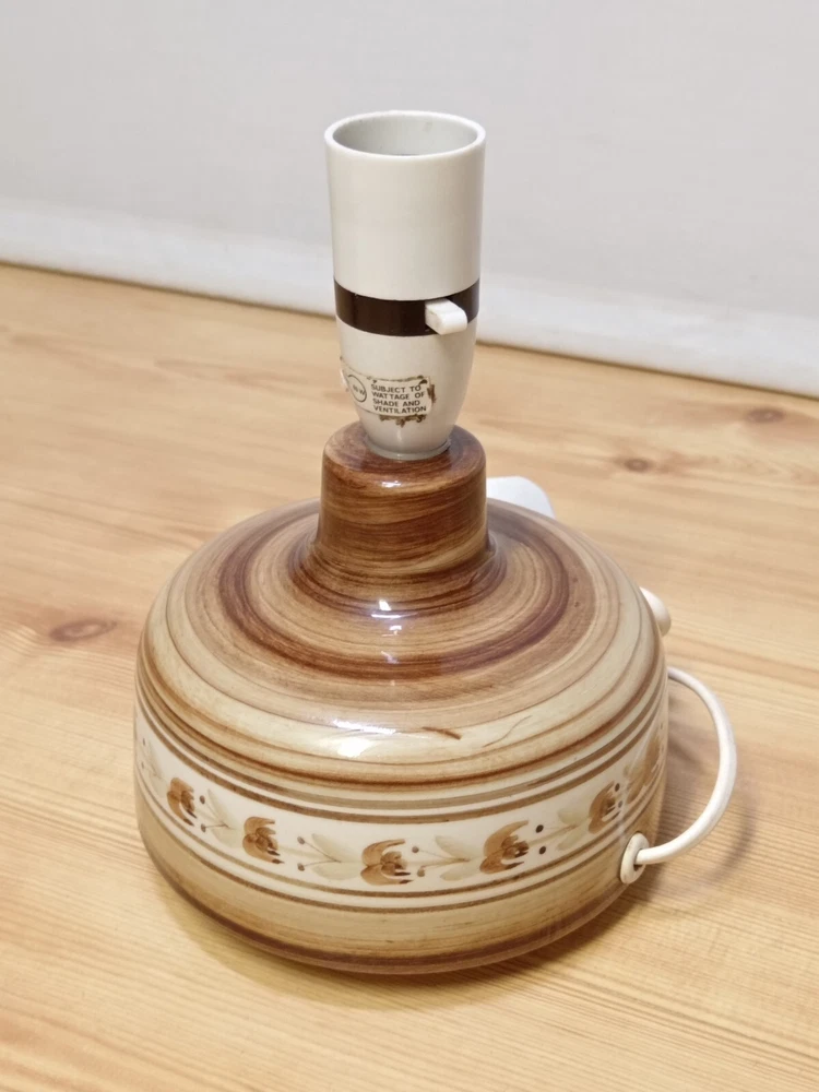 Vintage 1970s Jersey Pottery Lamp Base Foral Leaf Pattern. - Tested & Working. Great Condition with no damage. 7.5" total height and 5.5" in diameter. Please look at the pictures for full condition and what you will receive.