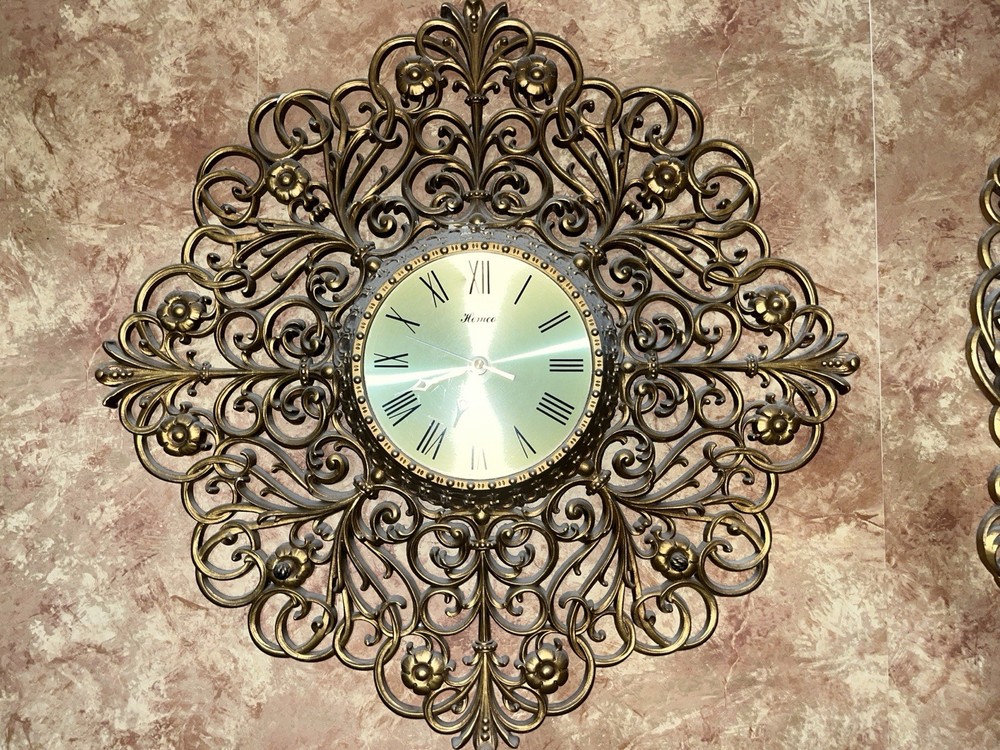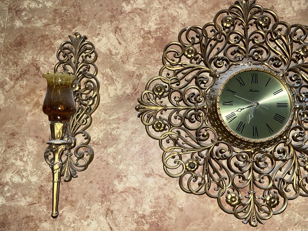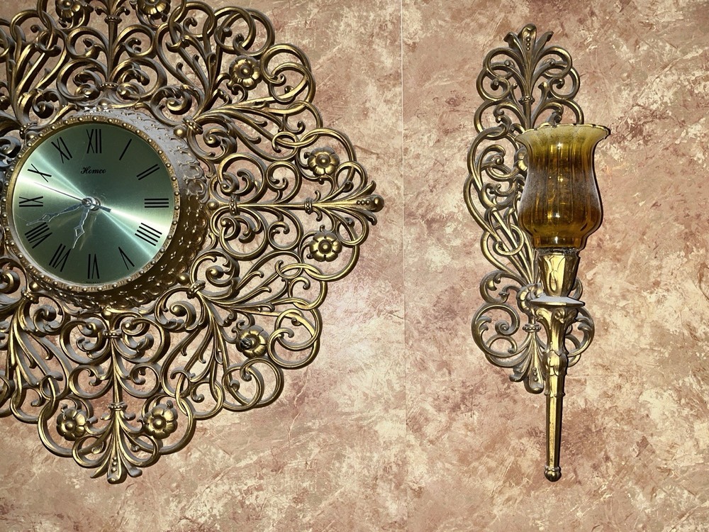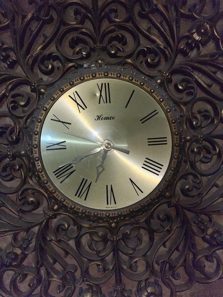 Vintage 1976 Homco Home Interiors Gold Resin or Plastic Large Ornate Wall Clock