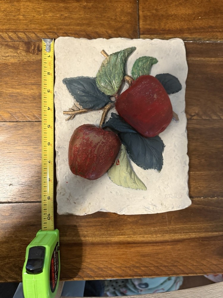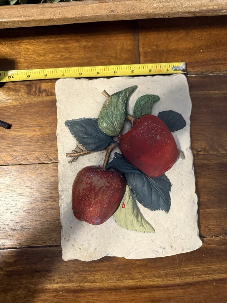 This vintage bas-relief apple sculpture is a stunning piece of art! The detailed plaster work and vibrant colors bring a nostalgic charm to any wall. Signed by S Romo in 1977, it’s a rare find that adds character and a handmade touch to your decor. The 10"x7.5" size is perfect for small spaces, and the Mexican craftsmanship makes it a unique conversation starter. Love the retro fruit theme—great for art lovers and collectors!