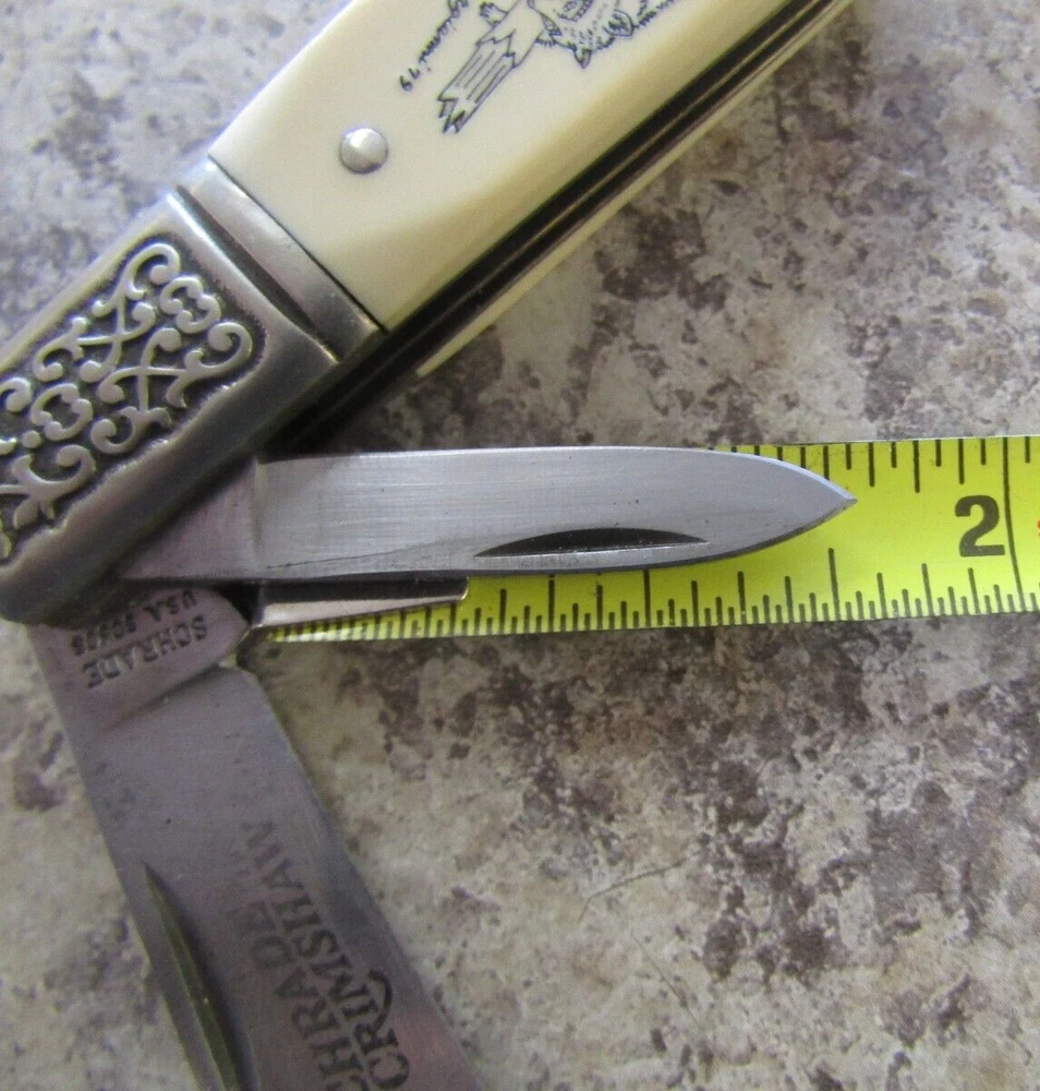 Type:PocketknifeCountry of Manufacture:United StatesOpening Mechanism:ManualNumber of Blades:2Brand:Schrade USAColor:CREAMBlade Type:Clip Point, PenCountry/Region of Manufacture:United StatesHandle Material:DELRINModel:SC506
