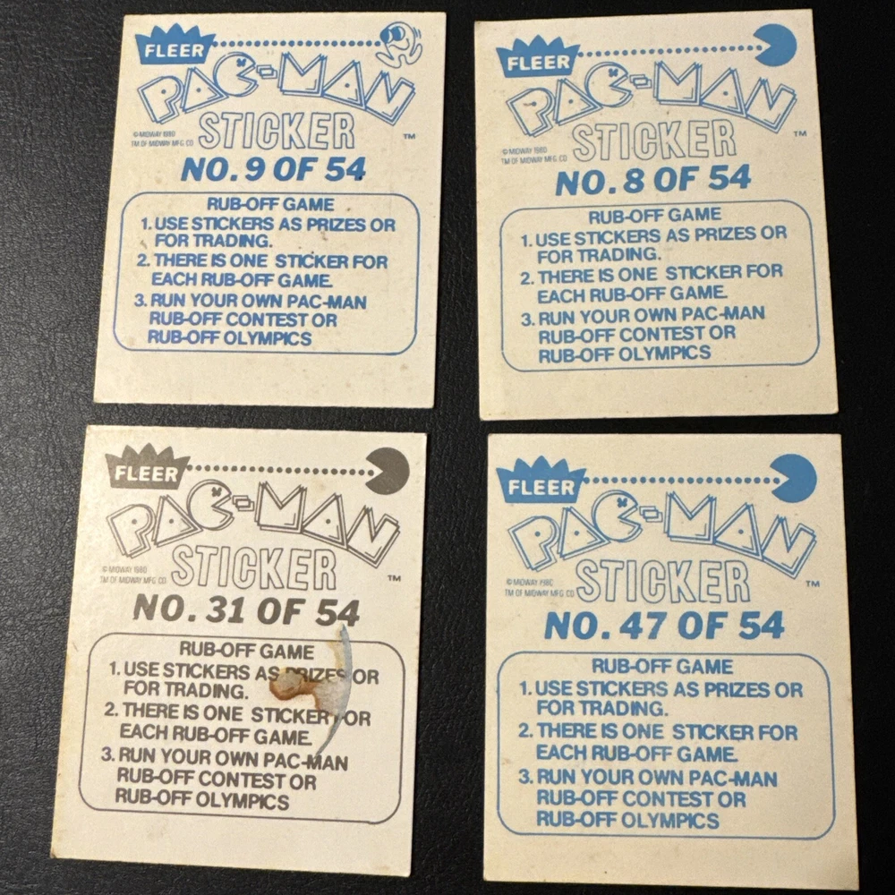 Vintage 1980 Fleer Pac Man Midway Arcade Video Game Stickers (4)