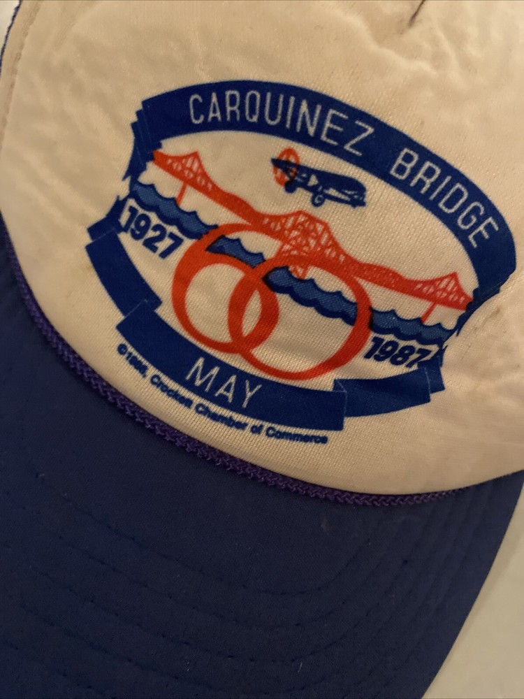 HomeVintage 1980s Carquinez Bridge 60 Year Trucker Mesh Snapback Hat Blue 1927-1987