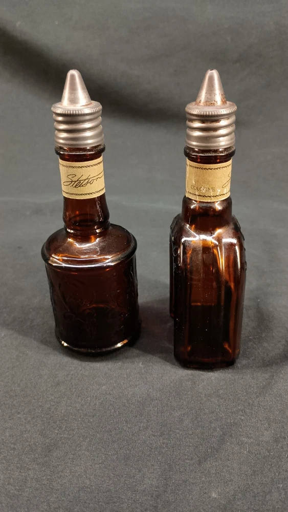 Add a touch of vintage to your collection with this set of 2 empty Stetson Cologne bottles. The amber glass bottles are adorned with a glossy finish and metal caps, making them perfect for display in any room. These collectible bottles are suitable for all occasions and are sure to be a great addition to your decorative collection. The bottles are 2 inches in length and 5 inches in height, with a weight of 6 ounces. They were manufactured in 1981 and are an original item from the Stetson collection. The closure type is a screw and the packaging is unboxed. The brown color of the bottles and the all-over pattern make them a great fit for any decor. Thank you for visiting my listing today and thank you for your interest in this item! My goal is to have a pleasant transaction resulting in a satisfied customer. I hope any transaction between us leaves you with a feeling of confidence knowing you can trust me and the items I offer here. *Most if not all my listings are set to accept offers. Feel free to send an offer and I will be happy to consider it!! *Please contact me with any questions or concerns and I will be happy to help. *Always examine the photos carefully, and if in doubt, email me with any questions you may have. *Please note that condition statements are offered as a guide only. They will always be somewhat subjective and reflect our opinion, which may not necessarily agree with someone else's opinion. PLEASE READ: I aim to please and I want my buyers to have a positive transaction with me. If you have questions, concerns, or special requests related to any of my items I hope you will contact me so we can work them out to your satisfaction. I sell my items to give you a great item at a decent price while making a little profit at the same time. If you feel the item you are interested in is too pricey do not hesitate to send me a fair offer and I will consider it. My goal is to satisfy your needs and mine so both parties can benefit. SHIPPING: If you prefer a different shipping method or company please contact me and I will do all I can to make that happen. If you have concerns or requests about the packaging of your item contact me and I will do all I can to accommodate them. Shipping costs are based on location in each state or country, the costs always differ. After I have received your payment I will ship your item out within 3 business days or less excluding weekends and holidays. BEFORE PURCHASING & BIDDING: **Please see all the pictures. I do not have great photography skills but I try to get the most accurate photos I can. If you are unsure about something you see in a photo contact me so I can do what I am able to answer your concern about the item. **I cannot stress enough that if you have any questions or concerns please contact me before purchasing and bidding. Communication can solve so much. **As a customer myself, I understand the meaning of customer satisfaction and my goal is to have nothing but satisfied customers. If you are not unsatisfied with your purchase I ask that you please contact me so I can take care of your issue. My goal is for you to be 100% satisfied. INTERNATIONAL BUYERS WELCOMED - PLEASE NOTE: I welcome International buyers! Please be aware that any custom/duties/taxes that the parcel might incur once it is out of the USA are the responsibility of the buyer. Please check with your country's customs office to determine what these additional costs will be prior to bidding or buying. Please refer to the eBay Site Map for more information if needed.