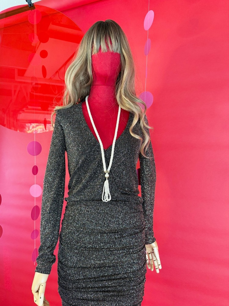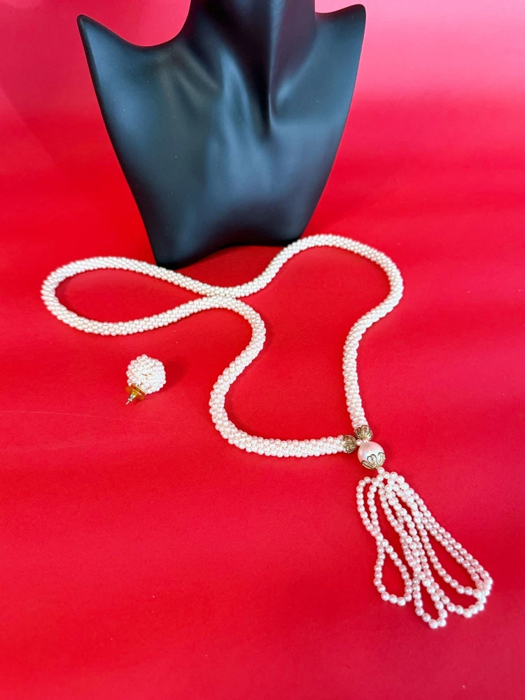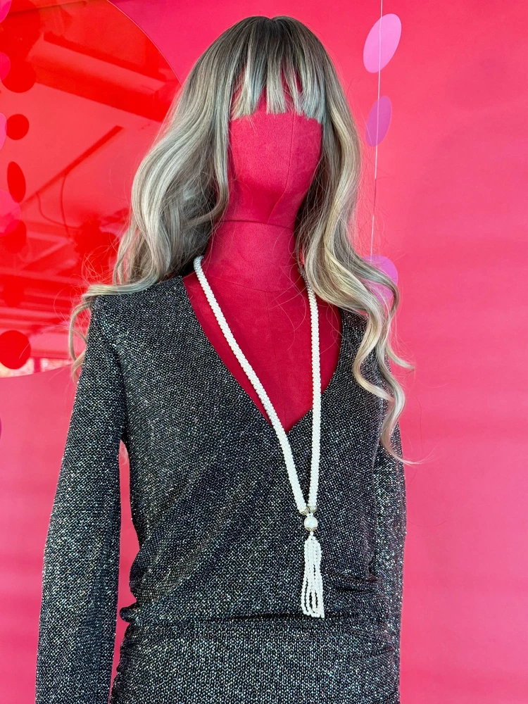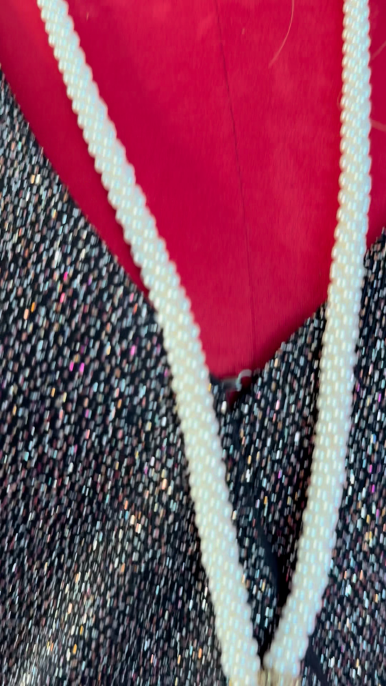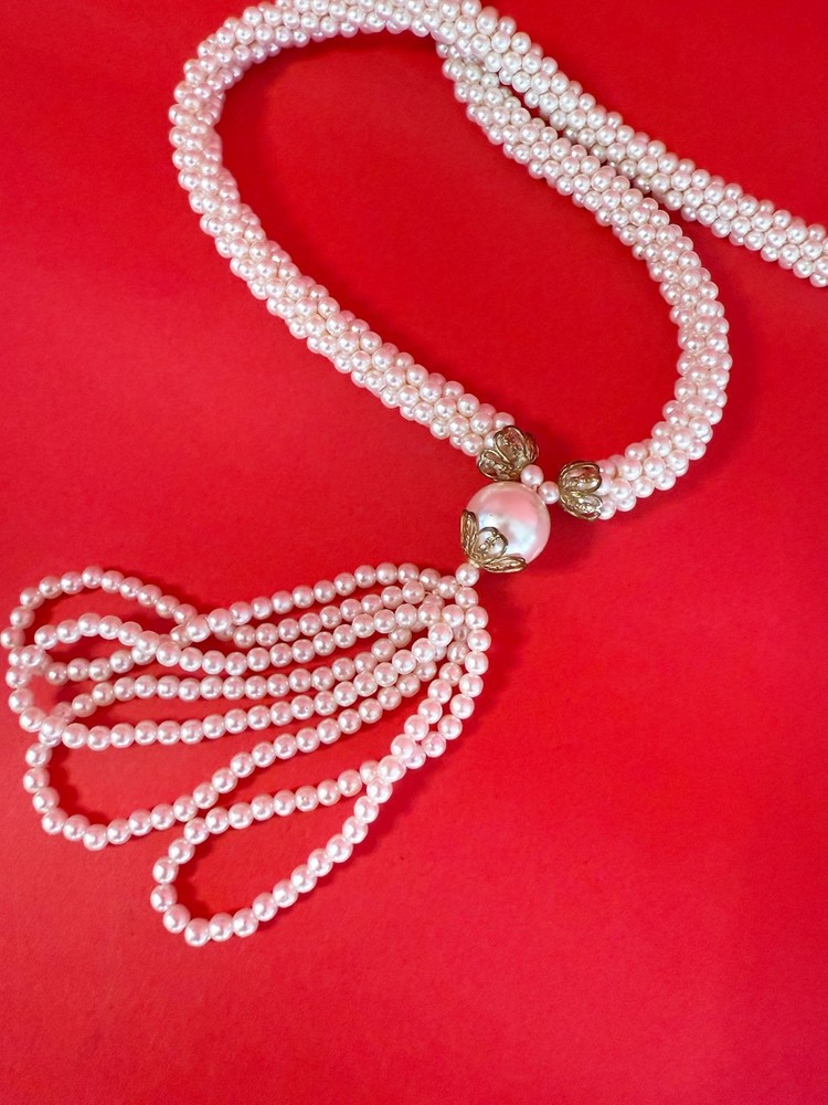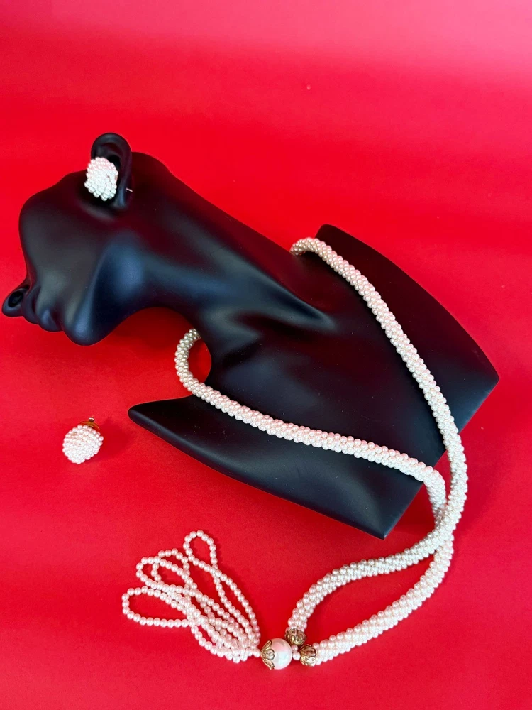 A timeless treasure from the 1980s, this vintage faux pearl set features a dramatic knotted necklace with a sculptural drop tassel and a matching pair of stud earrings. DETAILS: Glamorous without trying too hard, it’s the kind of set that instantly pulls a look together—whether you’re going for art-deco drama or coastal grandma chic. • Era: 1980s • Materials: Faux pearls, goldtone accents, plastic/resin core • Closure: Stud earrings • Necklace Length: 19" with a drop tassel • Earrings Diameter: 1" • Condition: Excellent vintage condition with very light wear STYLING: Perfect with a silk blouse and jeans for retro polish, or styled with a black slip dress for gallery nights and weddings. The set also works beautifully split up—try the necklace with a vintage tee or wear the earrings solo for a playful 80s accent. ABOUT US: We’re your go-to sustainable fashion blog, making the world mindful, stylish, and eco-friendly one outfit at a time. Shopping at Sparkpick means joining a movement that champions sustainability, minimalism, self-expression, and supports causes like Fashion Revolution and Art for Change. SUSTAINABILITY: We’re committed to looking good and doing good. We offset carbon emissions with Klima, plant trees with One Tree Planted, and ship our garments in recyclable boxes made from post-consumer waste.