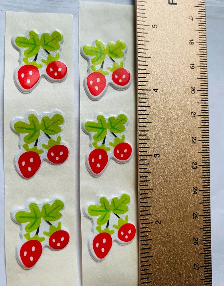 Vintage Set of 6 Count ~ 1980s Puffy Scratch N Sniff Long Stem Strawberry Stickers Vinyl Stick-Ons With Smell -Scent is not guaranteed due to age, but I am still able to smell every sticker. :) Each sticker is carefully unstucked and ready for use, making it easy to create unique and personalized embellishments for your scrapbooking needs. This set is a must-have for any collector or crafter, and is sure to bring a smile to your face. The stickers I am selling are from my Grandmother & Great Grandmother's personal sticker collection. Most are from over 30/40+ years ago. They have been in photo albums, boxes and plastic bags. These stickers are very Rare & in great condition. COLOR MAY VARY FROM DIFFERENT SCREENS PLEASE ASK ANY QUESTIONS YOU MAY HAVE ABOUT THE COLORING OF THIS ITEM BEFORE COMMITTING TO PURCHASING IT PLEASE. Check out my other collections! Thank you.