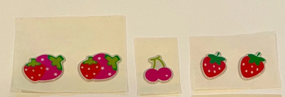 Vintage 1980s Puffy Fruit Scratch N Sniff Fruit Stickers Vinyl Stick-Ons With Smell 9 Loose Sheets show some wear. 2- Duo Strawberries 1- Pink Cherries 2 - Strawberries 2 -Watermelon Slices 2 - Duo Strawberries on Stem -Scent is not guaranteed due to age, but I am still able to smell every sticker. :) COLOR MAY VARY FROM DIFFERENT SCREENS PLEASE ASK ANY QUESTIONS YOU MAY HAVE ABOUT THE COLORING OF THIS ITEM BEFORE COMMITTING TO PURCHASING IT PLEASE. Check out my other collections! Thank you.