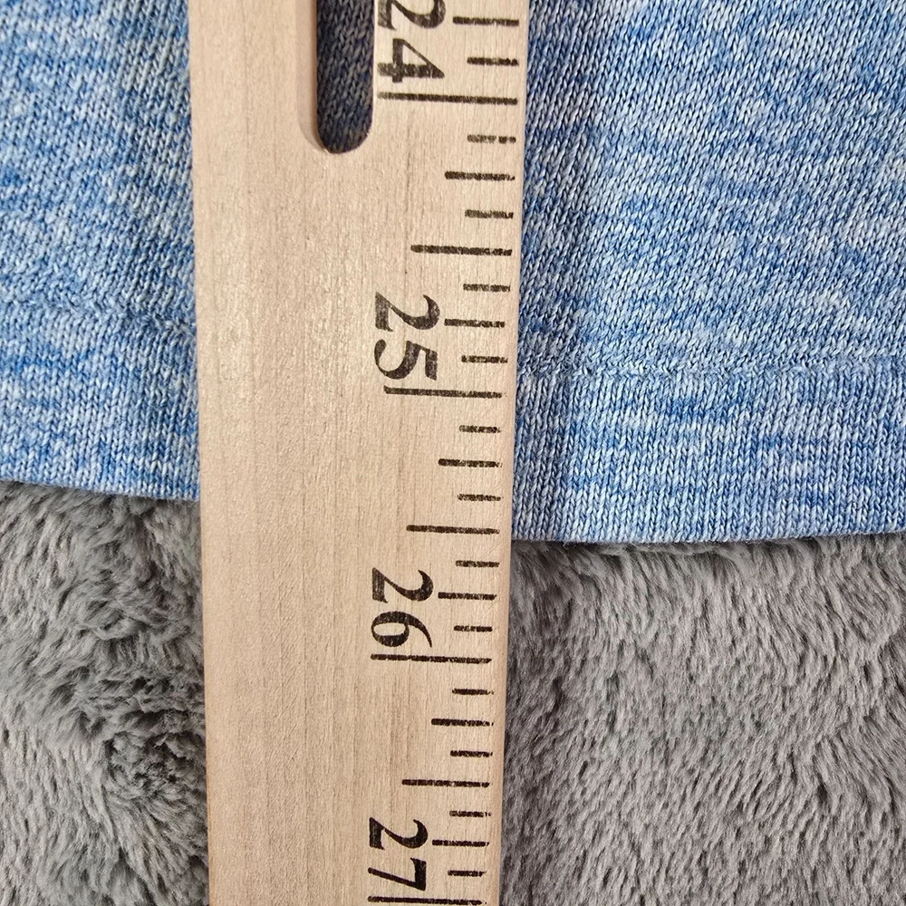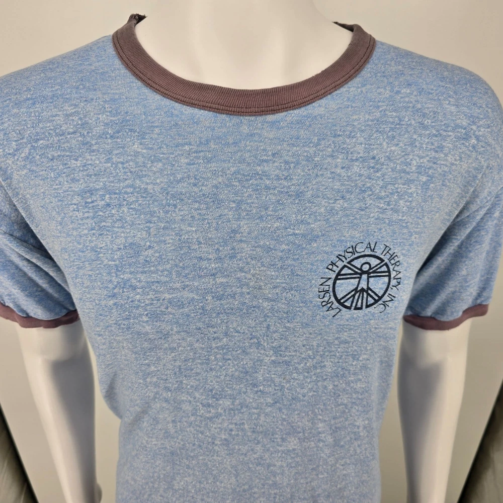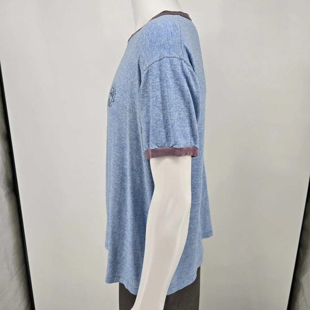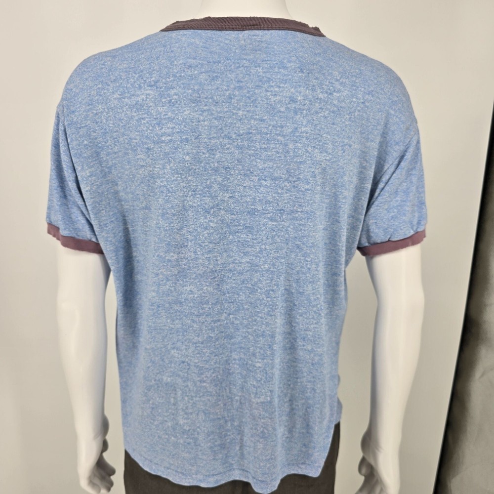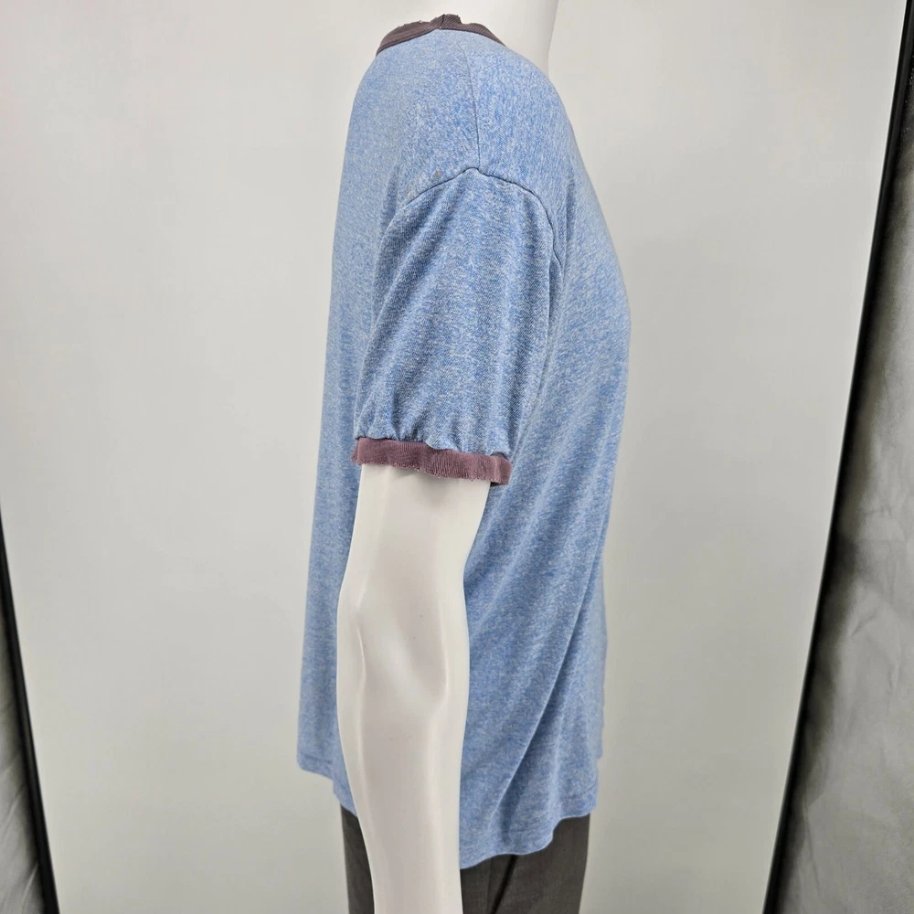 🔹 Item Details: Brand: Russell Athletic Material: 50% Polyester, 38% Cotton, 12% Rayon (tri-blend) Color: Heather Blue Decade of Manufacture: 1980s Country of Manufacture: U.S.A. Notable Features: Single Stitch Hem, Ringer Tee 🔹 Condition Notes: Good used vintage condition. Visible wear/grinding at collar and at both cuffs. Faint stain on front to right of logo. A few other spots of faint staining throughout. Light to moderate fabric wear throughout. See photos. 🔹 Size Notes: Vintage Tag Size: XL Modern Measured Size: XL 🔹 Measurements (Approximate): Chest (pit to pit): 47 inches Collar to Hem: 25.5 inches 🔹 Shipping & Returns: Ships worldwide from Lexington, KY. Ships within 3 business days of purchase. Returns accepted within 60 days for domestic orders and 30 days for international orders.