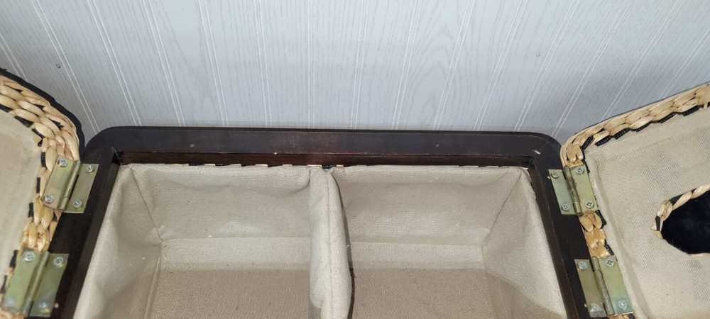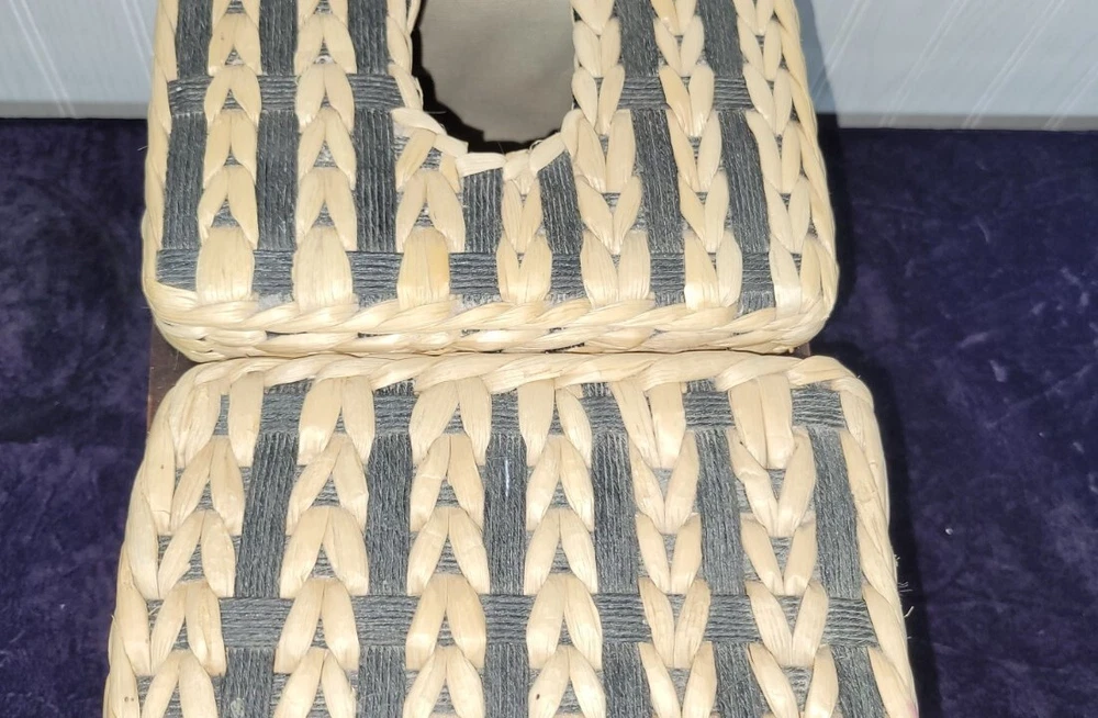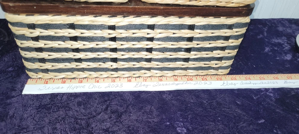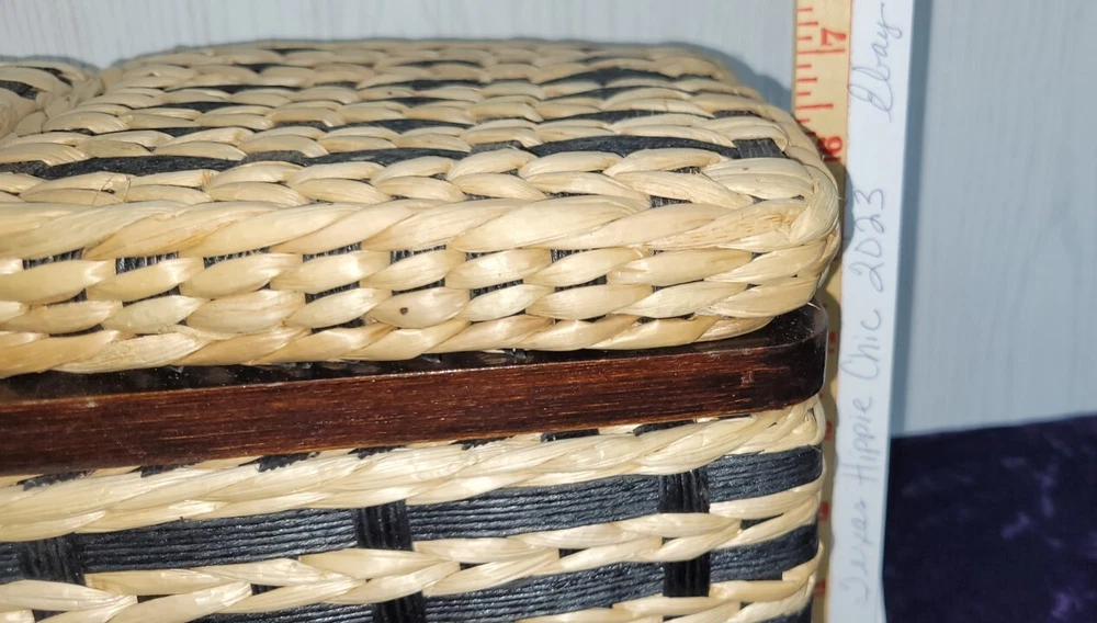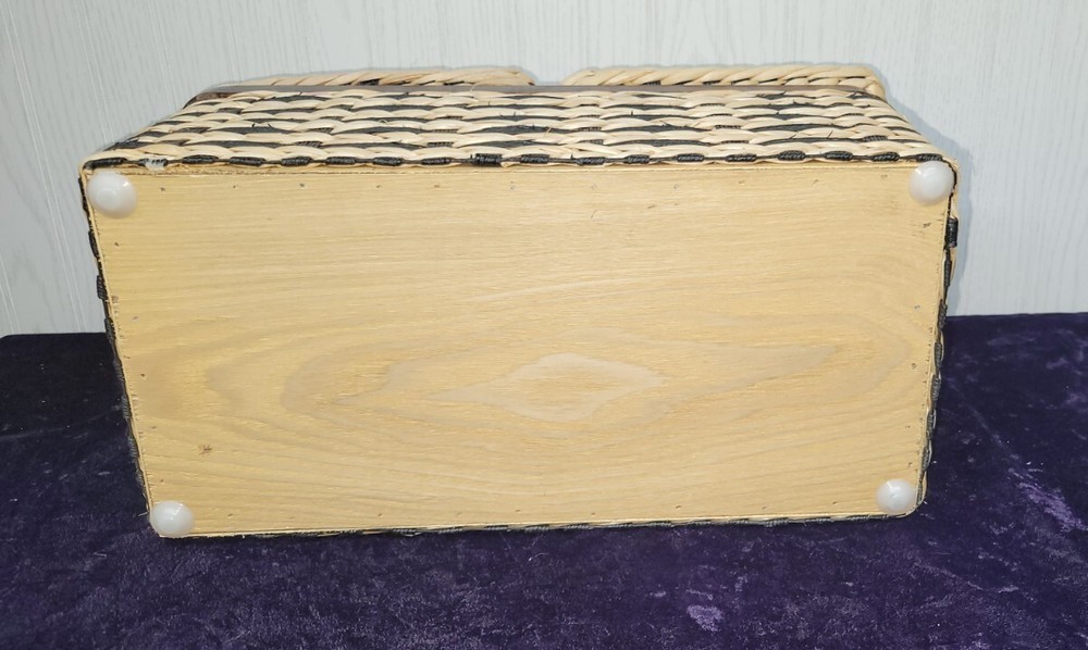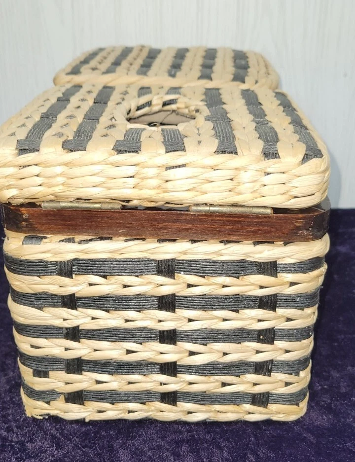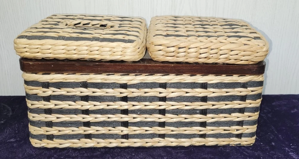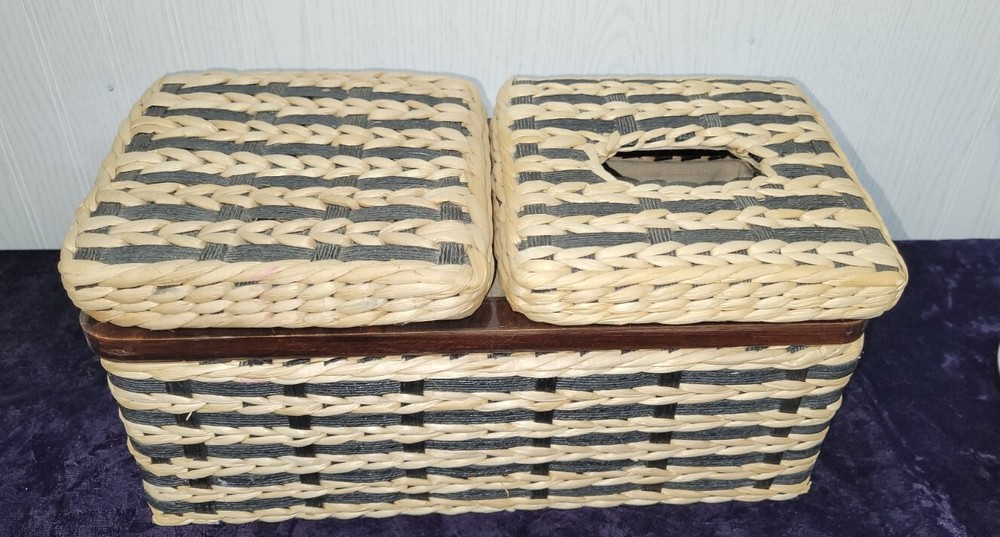 VINTAGE 1980’s Wicker & Wood Black and natural colored Bathroom Kleenex+ Covered Compartment Counter Caddy Excellent condition Wood is still solid, no splits and the hinges are still tight. Wicker is in excellent condition FREE SHIPPING!! Shipping is expensive, so let us cover it. Thank you for looking!!👀 ❤️Veteran Owned and Operated❤️ 🤍God Bless the USA!🤍 💙Love one another!💙 👀👀Please look at our other items!👀👀 There's a lot more!!!!! Please message with an offer if declined. No return policy is offered. Please contact us directly for a resolution. 🚭Smoke Free Store!🚭 📬FREE SHIPPING in continental USA!📦