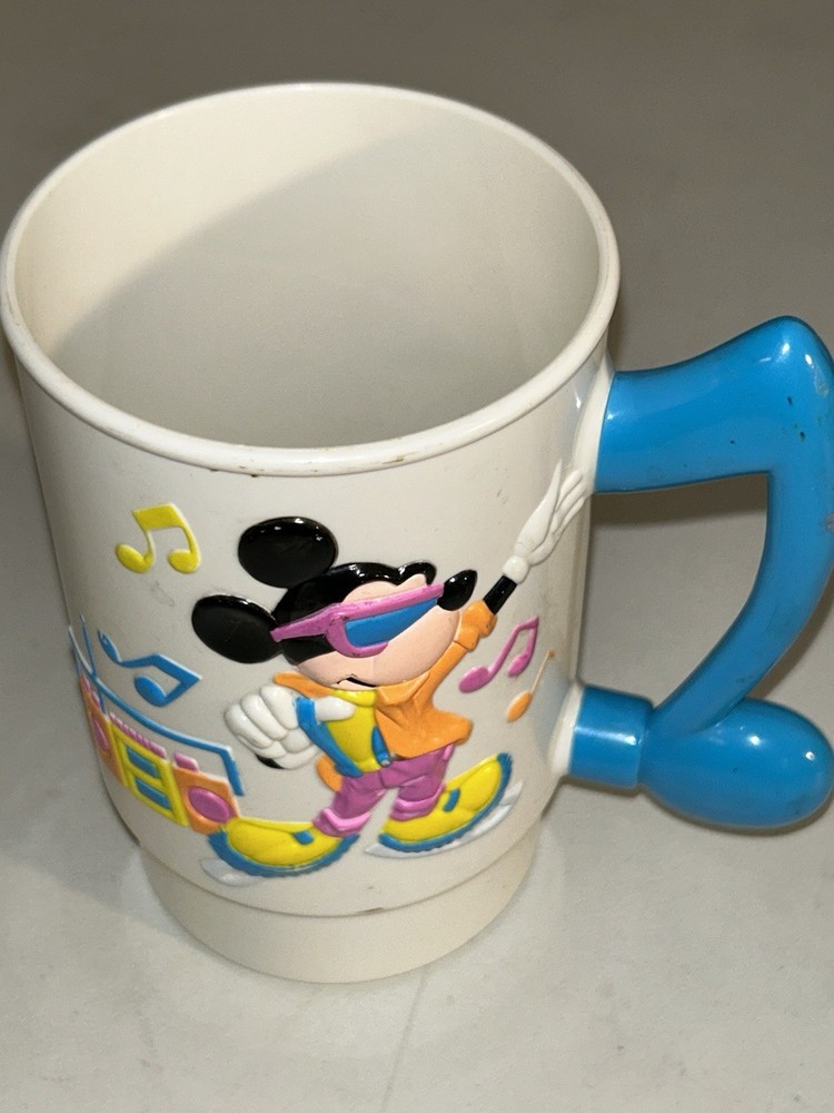 Immerse yourself in a touch of nostalgia with the Vintage 1981 Disney World on Ice Disco Mickey Super 3-D Mug. A true gem for collectors and Disney enthusiasts alike, this mug showcases the iconic Mickey Mouse in a vibrant, three-dimensional design that captures the magic of the era. Crafted by Disney, this mug is a rare find representing a beloved piece of memorabilia from the early 80s. Perfect for display or casual use, it serves as a charming reminder of the whimsical Disney World on Ice events that have captivated fans for decades.
