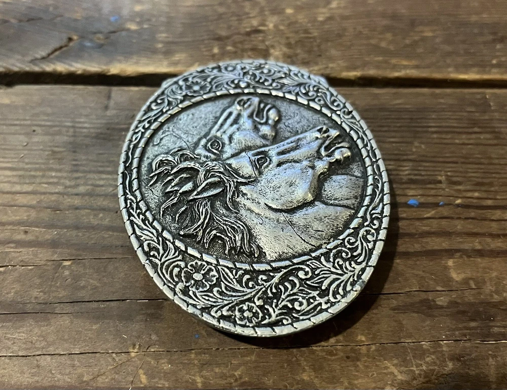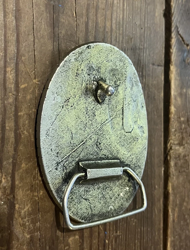 Add a touch of vintage to your wardrobe with this unique Indiana Metal Works Horse Belt Buckle. Crafted from durable metal, this buckle features a stunning horse design that is perfect for animal lovers and collectors alike. The intricate details bring this piece to life, making it a standout addition to any outfit. This vintage buckle is perfect for those who appreciate the art of animal-themed fashion. The belt is not included, but it is compatible with most belts for a versatile look. Ideal for collectors, this buckle is a rare find that is sure to impress. Add it to your collection today and take your style to the next level!