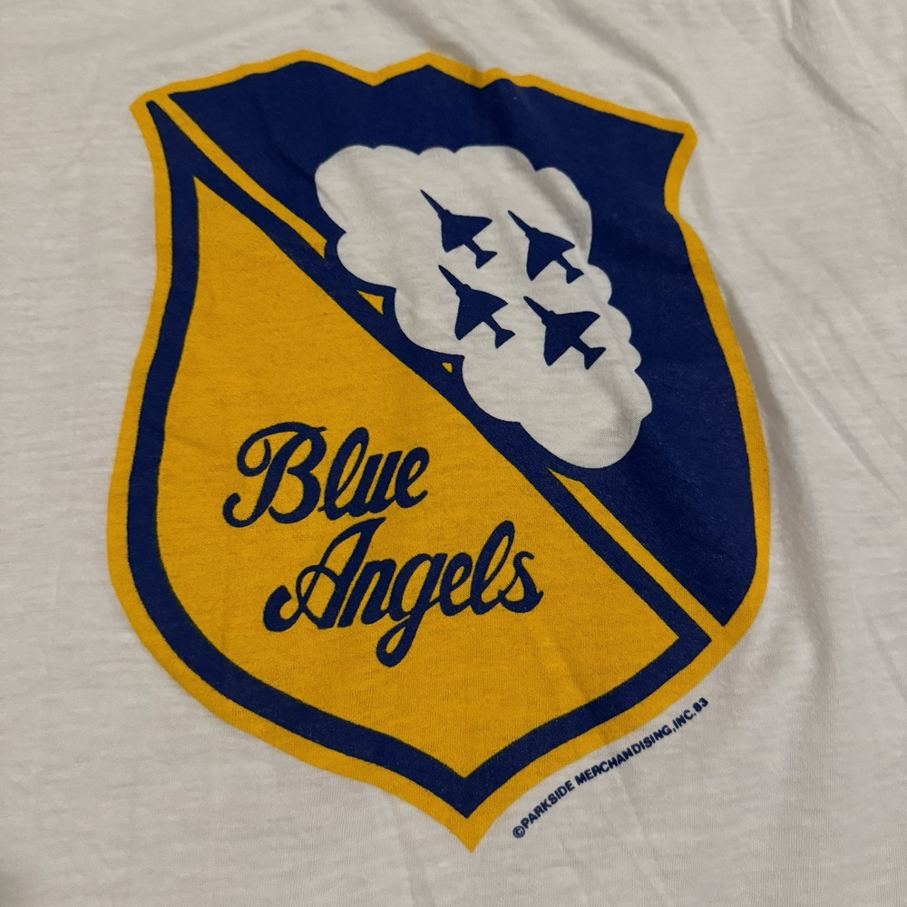 Vintage 1983 Blue Angels Navy Aerobatics Ringer T-Shirt White Blue Size Large Great condition, fits like a small Chest: 19.5” Length: 24” Shoulder: 15.5” Please DM for any questions!