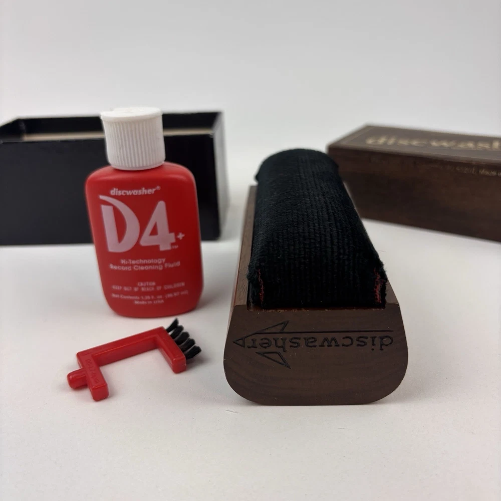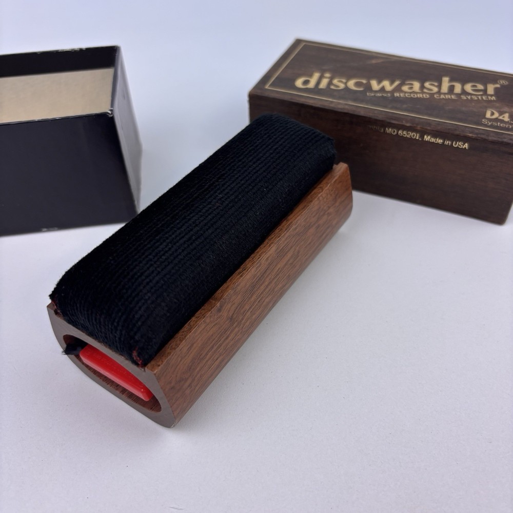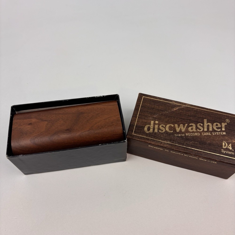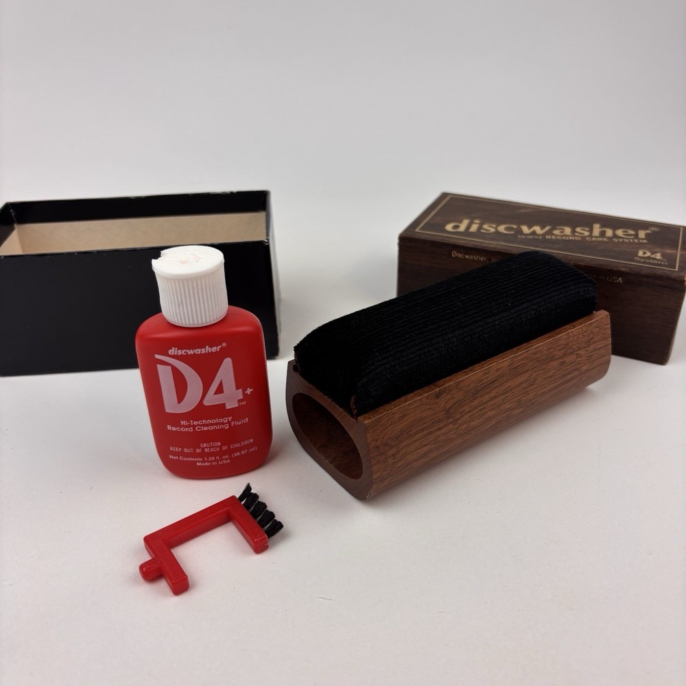 Vintage 1983 DISCWASHER D4 Vinyl Record Cleaning Care System Walnut Brush w Acc.
