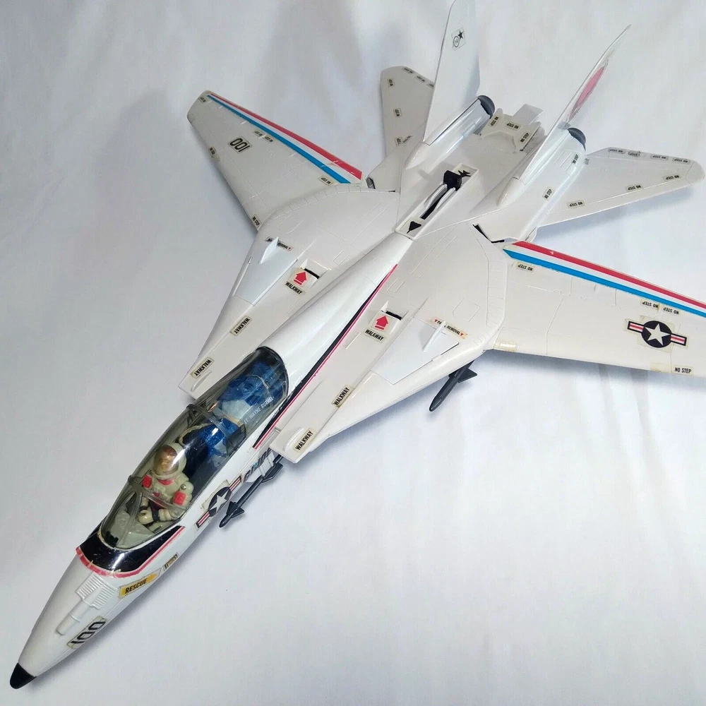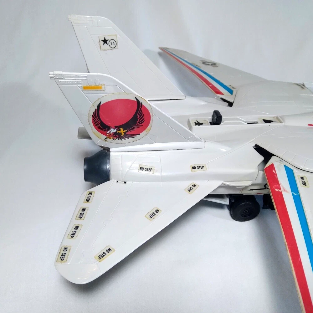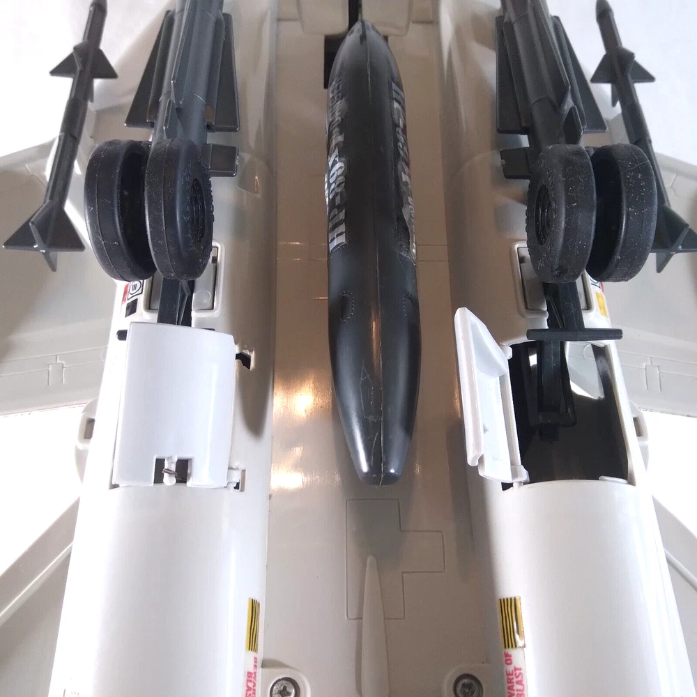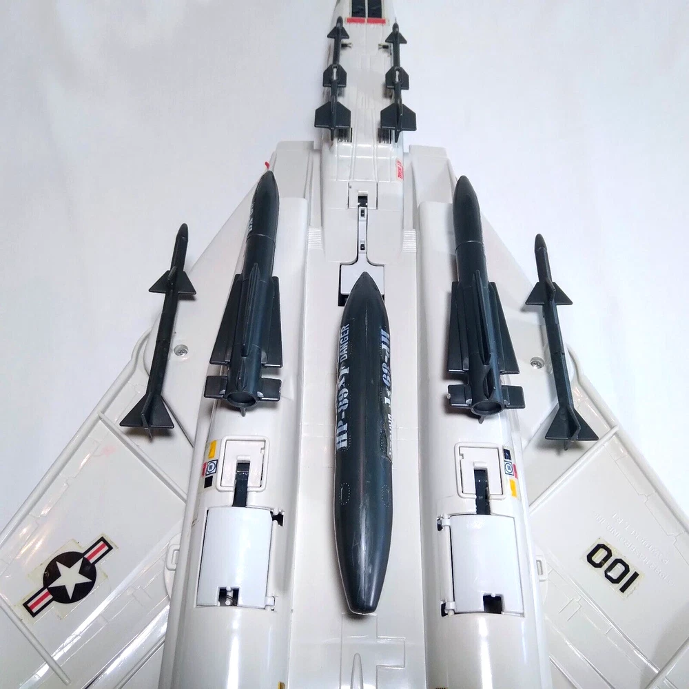 Vintage 1983 GI Joe Skystriker XP14F Combat Jet Includes: Fighter Jet Vehicle Ace Figure w/ Helmet 1x Parachute 1x Seat 7x Missiles Cockpit Canopy 2x Hatch Covers 2x Tail Fins Damaged: 2x Landing gear covers Missing: 1x Landing gear cover spring 1x Parachute 1x Seat All original, no repro. Smoke free pet free home. I combine shipping on all items.