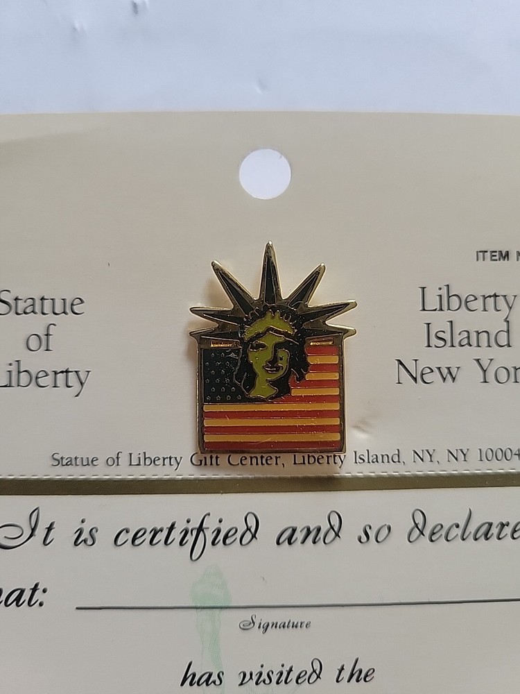 Vintage 1983 US Flag & Statue of Liberty Lapel Pin from Liberty Island NY by E. Hill Inc
