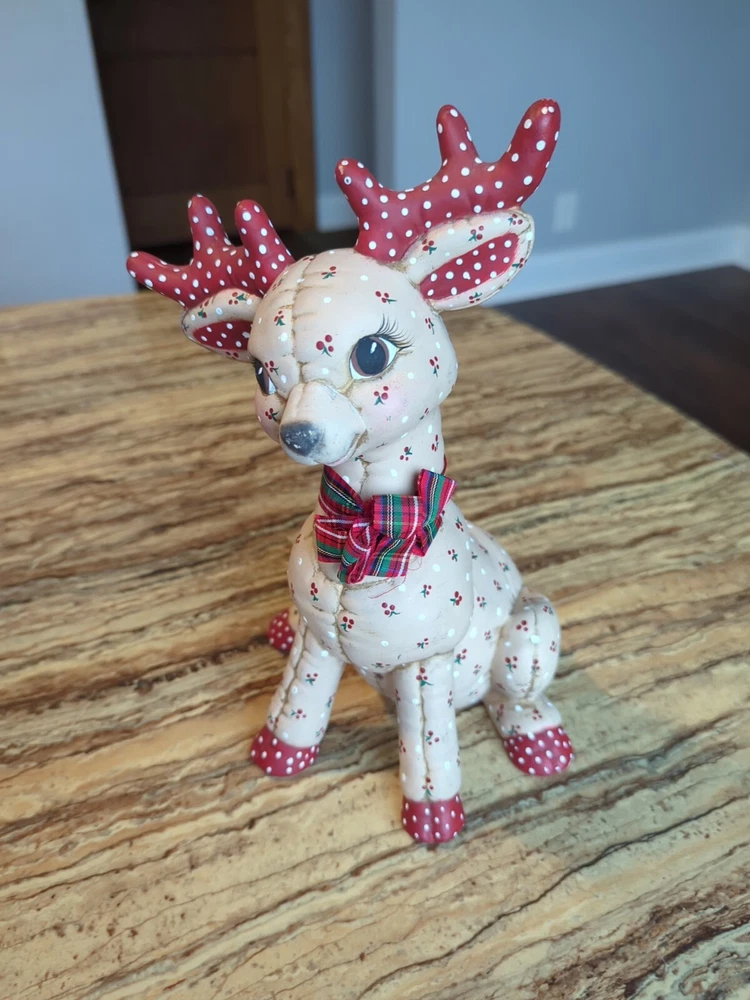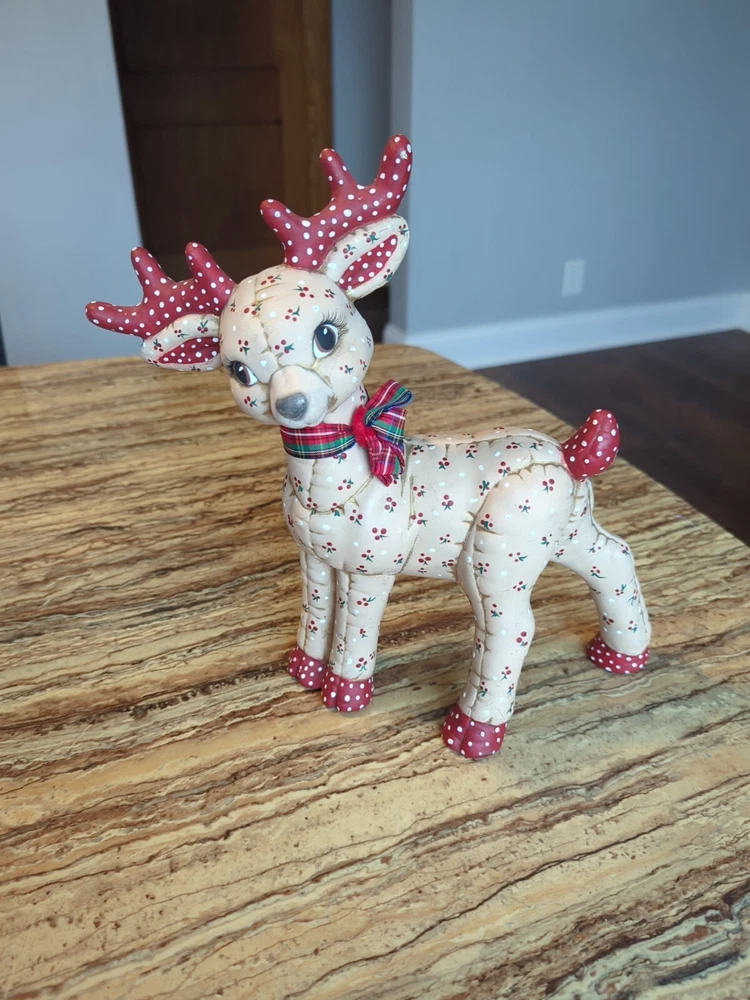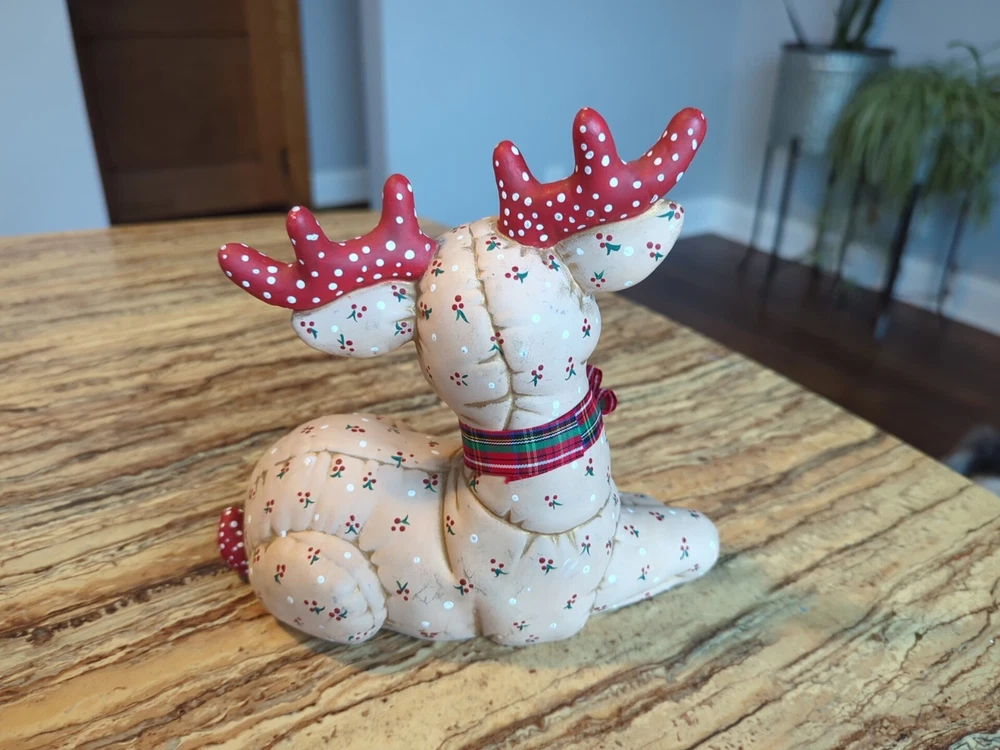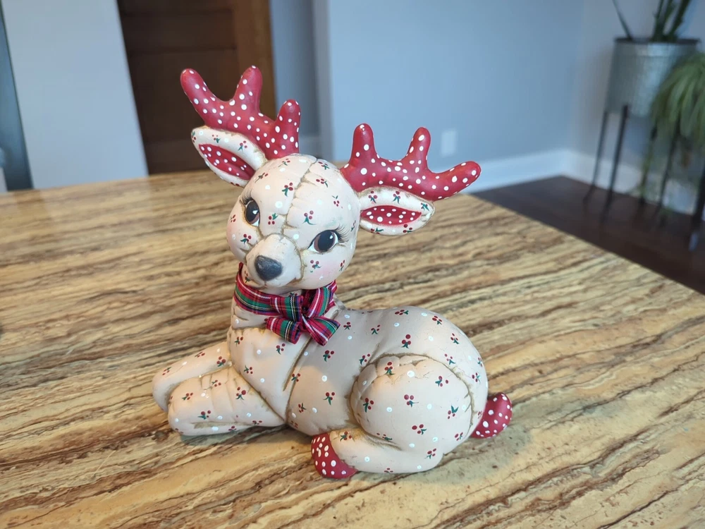 Care Instructions:Clean with Dampen ClothCharacter:ReindeerColor:MulticolorMaterial:Ceramic & PorcelainGlassmaking Technique:NAHandmade:YesPattern:QuiltedYear Manufactured:1986Occasion:ChristmasCollection:NASize:MediumEra:Late 20th Century (1970-1999)UPC:Does not applyAdditional Parts Required:NoShape:DeerFinish:MattPackaging:Unboxedgtin13:Does not applyBrand:kimpleTime Period Manufactured:UnknownSubject:ReindeerType:FigurineSuitable For:Christmas DecorCountry/Region of Manufacture:United StatesNumber in Pack:3Style:RetroFeatures:Hand Painted, Quilted lookRoom:Any RoomTheme:Seasonal, 70s, 80s, Christmas, Kitschy, Reindeer, RetroClosure Type:NA