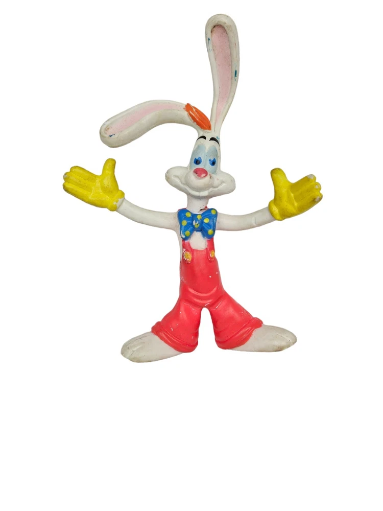 Vintage Disney Who Framed Roger Rabbit Bendable Bendy Poseable PVC 6" Figure K37 In good condition Vintage Disney Who Framed Roger Rabbit Bendable Bendy Poseable PVC 6" Figure. Features vintage Disney Amblin 1987 Who Framed Roger Rabbit bendable PVC figure, poseable Roger Rabbit. Measurements approx height 6" width 5" Fabric rubber This is a pre-owned item that may show signs of wear. In good condition, paint wearing off in spots and some discoloration. 14 Day returns accepted under the following conditions: Item must be in the same condition as stated If item shows additional wear buyer will receive a partial refund Buyer pays all shipping costs Refund amount will be for the item price only Please contact me prior to starting a return