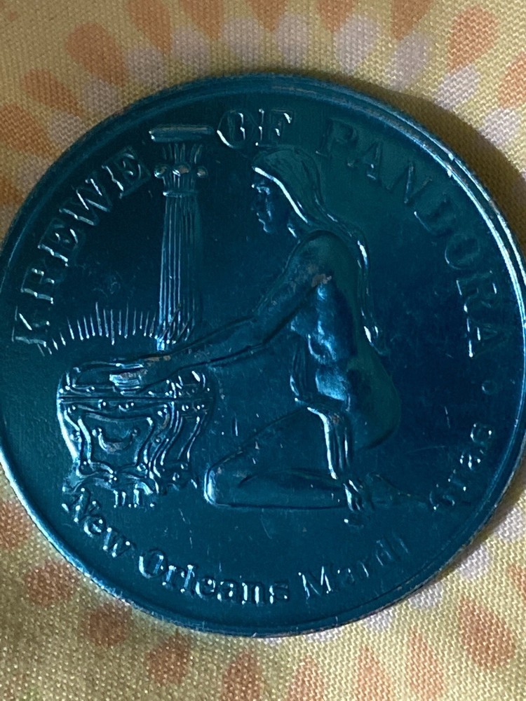 Vintage 1987 Pandora fantastic flickers Mardi Gras Coin Token Medallion 1-1/2". Condition is Used. Shipped with USPS First Class.