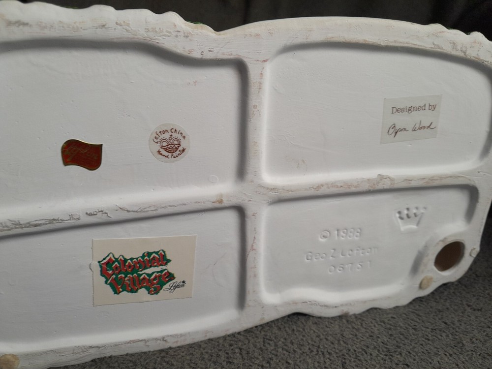 This rare vintage Lefton Colonial Village Sweetheart's Covered Bridge is a must-have for any collector. The bridge is beautifully hand-painted with a multicolor finish and features a colonial style that adds a touch of elegance to any room. It was manufactured in 1988 and is made of high-quality porcelain material. The bridge measures 10 inches in length and 6.5 inches in height, making it a large and impressive piece. It is part of the Colonial Village collection and is an original, not a reproduction. The bridge comes from China and is perfect for any occasion, especially Christmas. The Sweetheart's Covered Bridge will make a great addition to your Christmas Village collection.