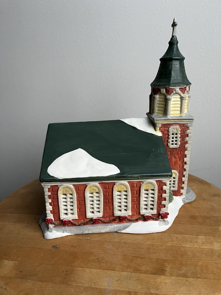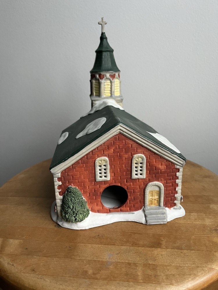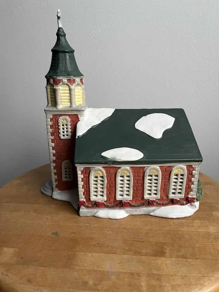 HomeVintage 1991 Dickensvale Porcelain Lighted Church House with Cross Collectible