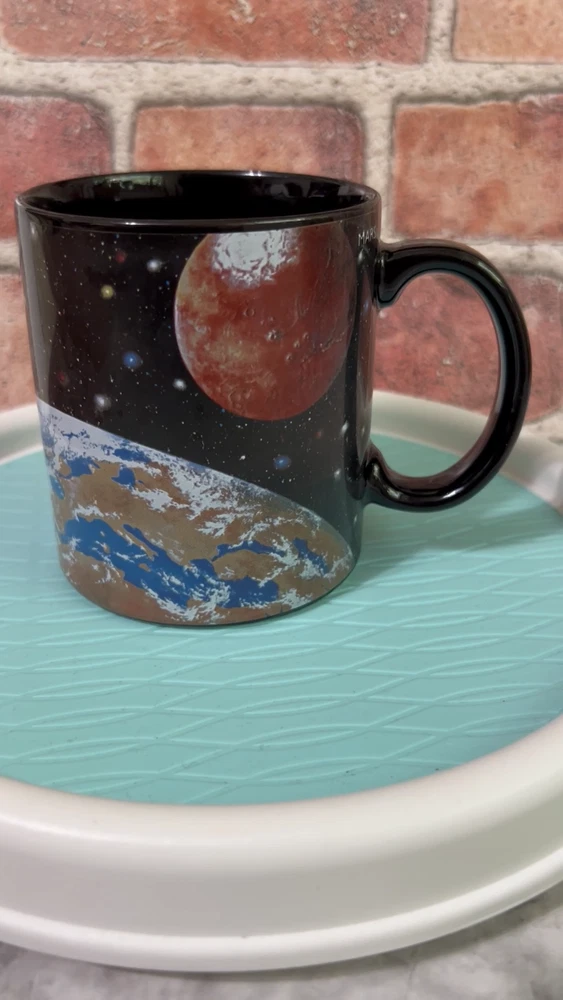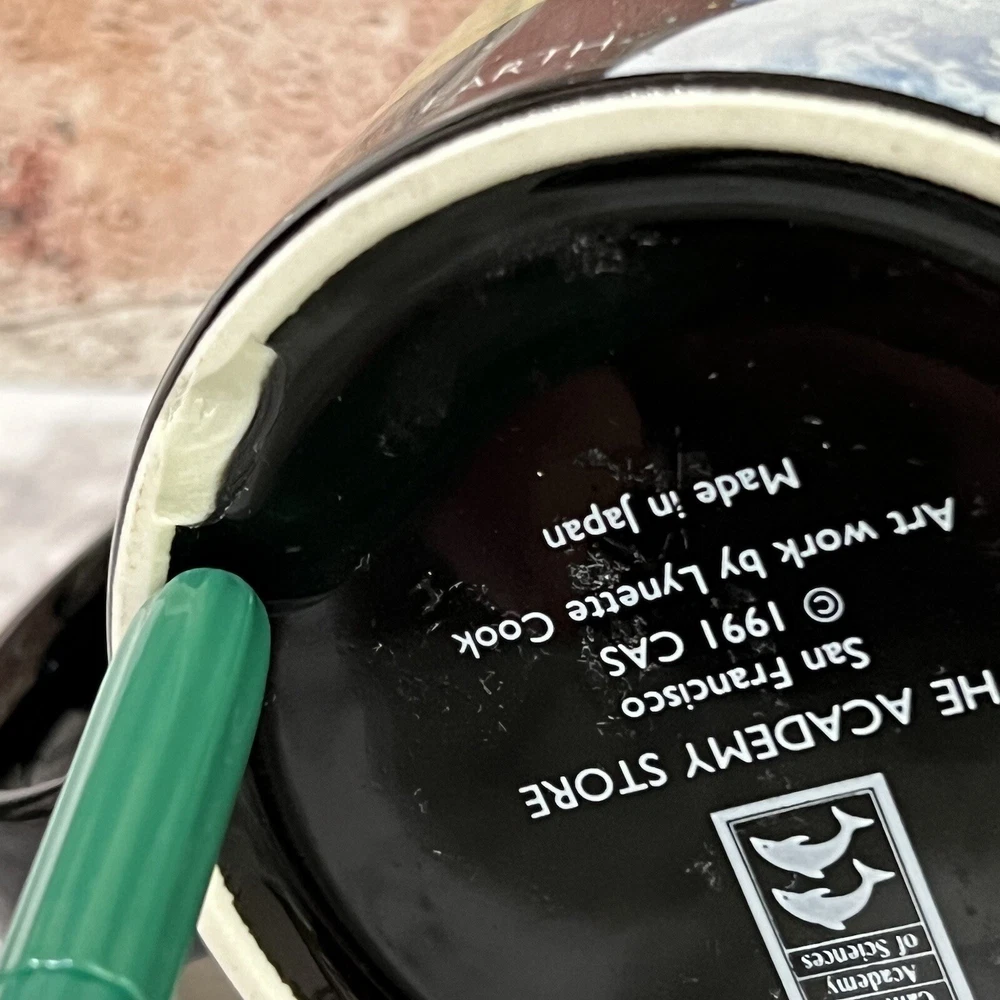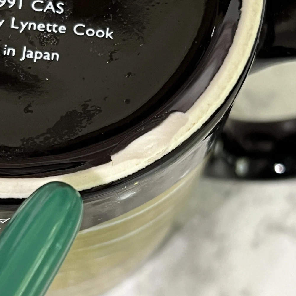 SAME OR NEXT DAY SHIPPING! 3.5" H x 3.25" W Items are stored in a pet and smoke-free environment 60 Day Returns CONDITION DETAILS: Small smooth chip on base. The chip is smooth to the touch. It's just past the bottom edge and It cannot be seen when the mug is sitting on its base. It does not affect the balance of the mug. PLEASE INSPECT THE PHOTOS CAREFULLY & ASK QUESTIONS BEFORE PURCHASE. THANK YOU.