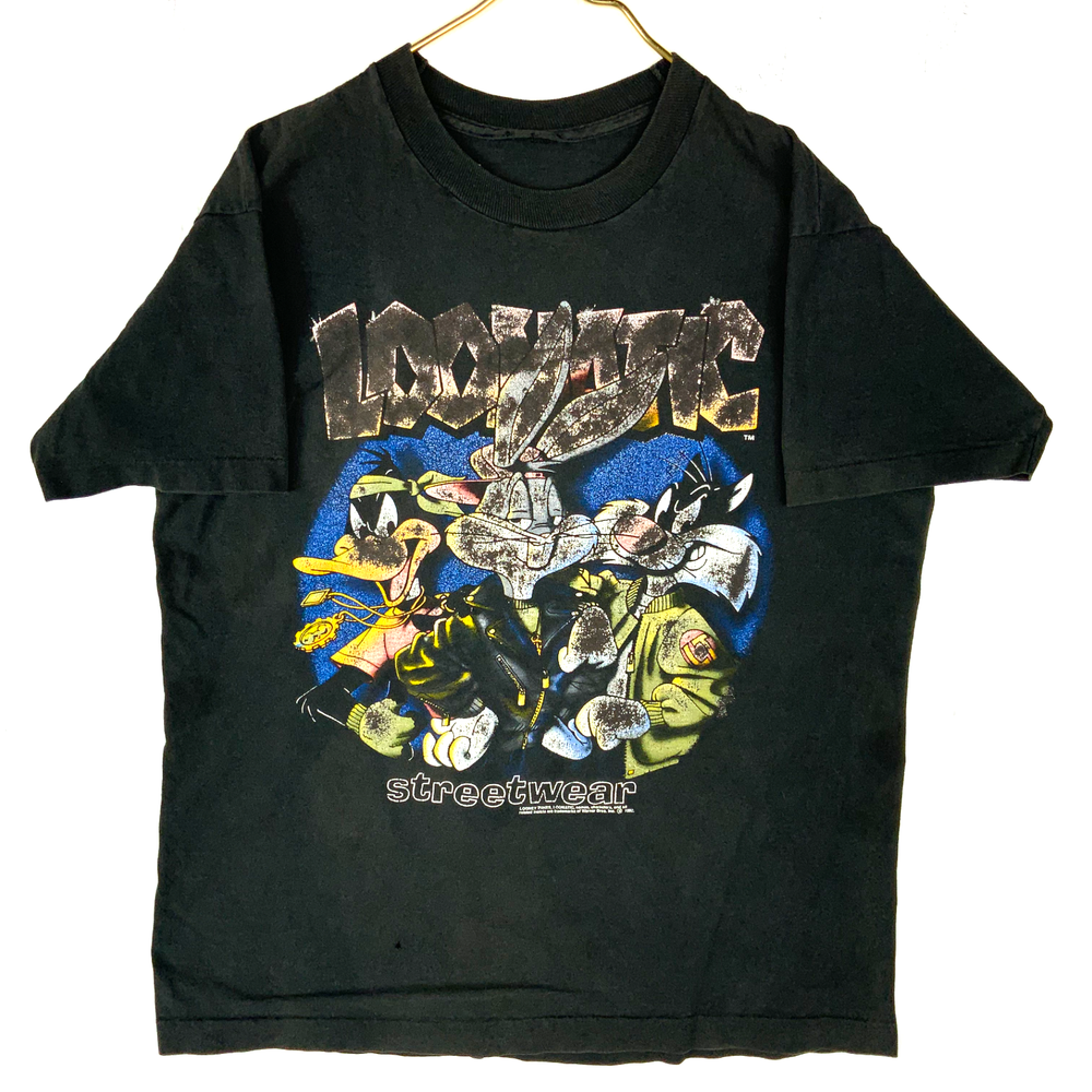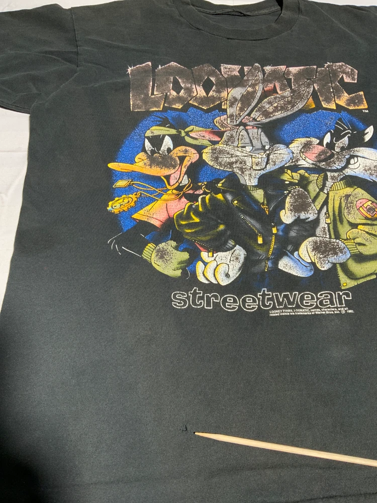 Vintage Looney Tunes T-Shirt Large Black Cartoon 1992 Loonatic Bugs Bunny 1990s Size/Measurements (Based in inches) Size - Large Pit to pit - 22" Length - 27.5" Condition / Details Vintage fading to the original color of the fabric Missing tag Cracking on print Small hole on front Combined Shipping: We provide combined shipping, please contact us for a quote