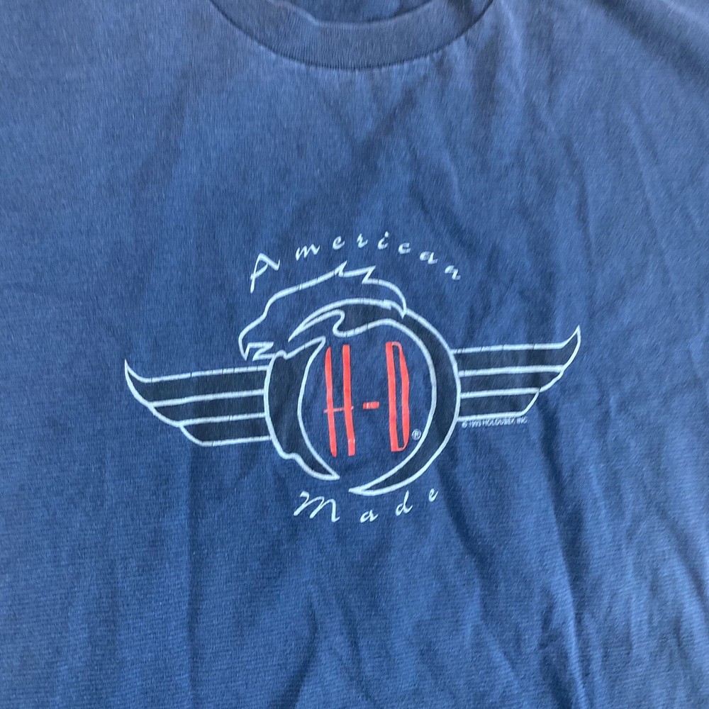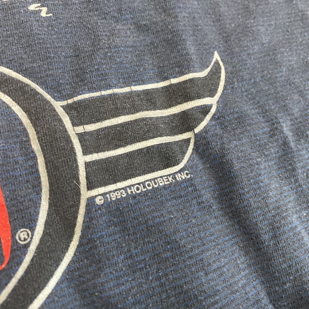 This is missing the size tag, please view measurements: Chest- 21 in Length- 28 in Sleeve- 8 in Vtg HOLOUBEK Harley Davidson 1993 T Shirt Single Stitch American Made Mens