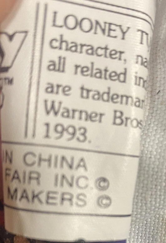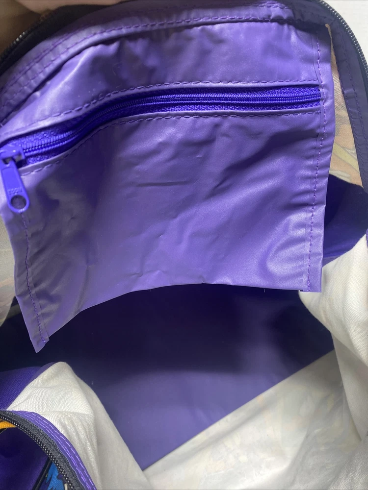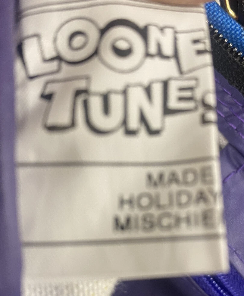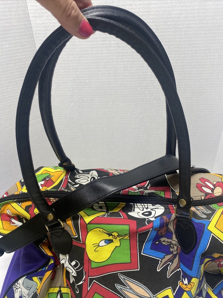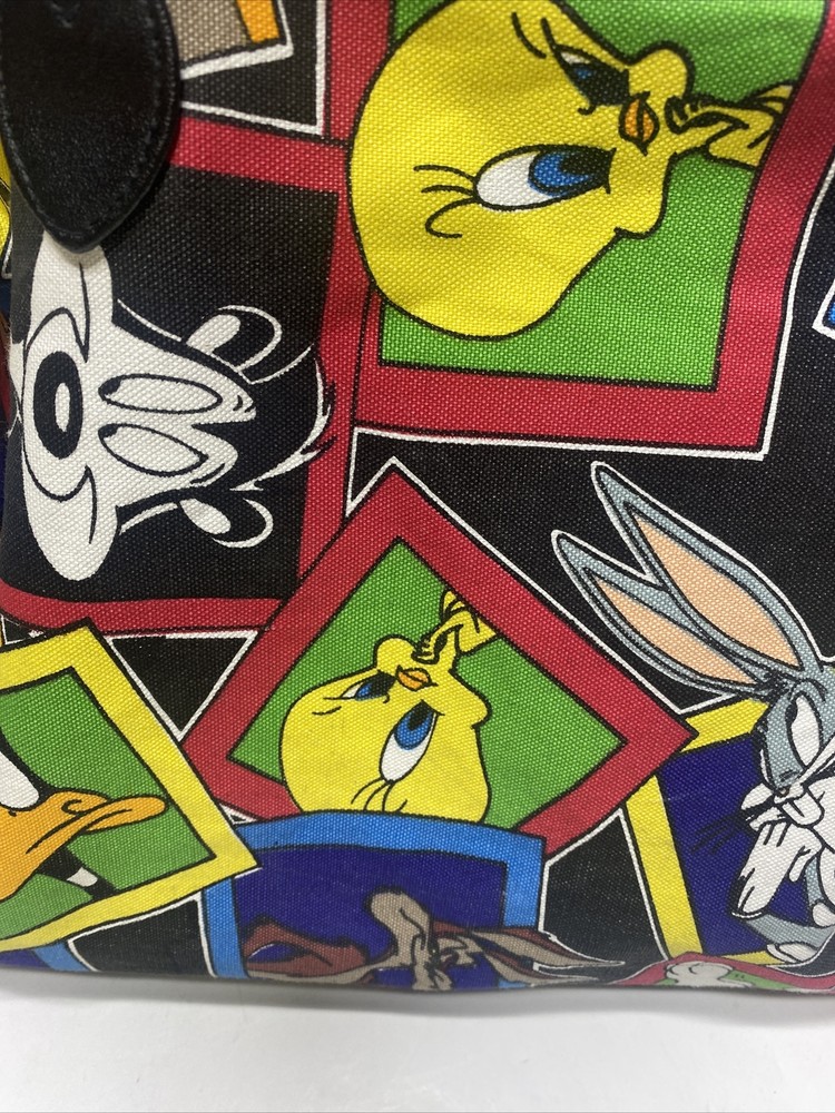 Vintage 1993 Looney Tunes Duffle Bag Bugs Taz Tweetie Characters purple black Large 20 x 14 x 9" Pre owned in great condition