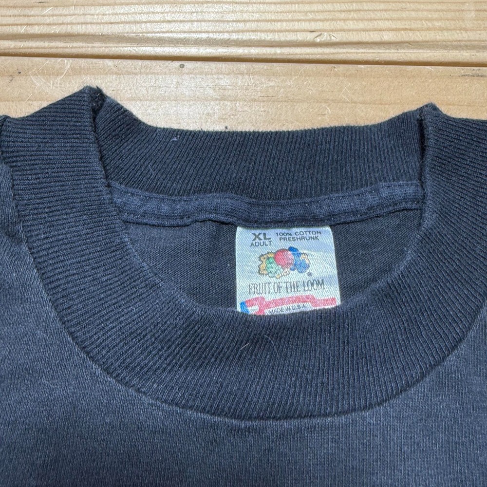 Personalize: No Fit: Regular Year Manufactured: 1990-1999 Country of Origin: United States Size: XL Material: Cotton Season: Fall, Spring, Summer Brand: Fruit of the Loom Handmade: No Size Type: Regular Features: Lightweight, Preshrunk, Single Stitch Neckline: Crew Neck Pattern: Graphic Print Theme: 90s, Art, Classic, Comics, Gothic, USA Color: Multicolor Vintage: Yes Type: T-Shirt Garment Care: Machine Washable Sleeve Length: Short Sleeve Department: Men