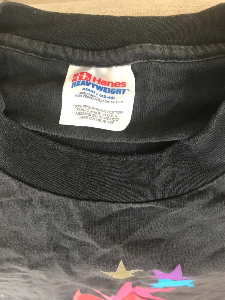 This vintage 1996 Atlanta Olympics Torch Single Stitch T-Shirt is a must-have for any Hanes collector. Made from heavyweight fabric, this black T-shirt features a bold design of the Olympic torch and the iconic Stitch character. The shirt is a size L and has short sleeves, making it perfect for casual wear or for sporting events. The shirt is in excellent shape and has been well-preserved over the years. It is a great addition to any vintage clothing collection and is sure to be a conversation starter. Don't miss out on the opportunity to own a piece of Olympic history.
