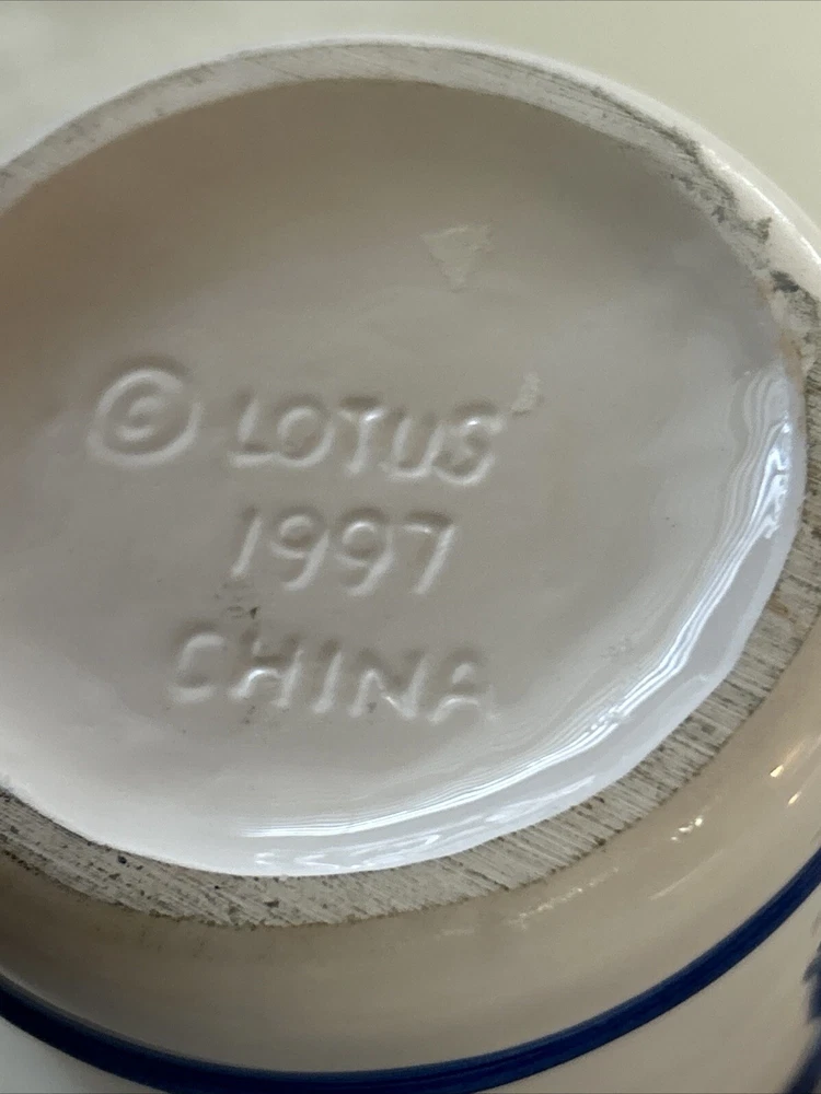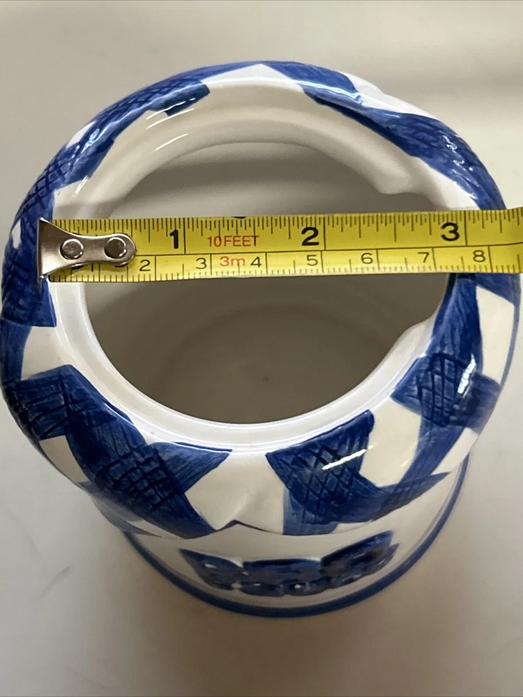 This vintage ceramic BBQ jar from Lotus is perfect for holding your cooking and grill tools, or even your favorite barbecue sauce. The blue color and ceramic material give it a unique and rustic look that will complement any outdoor space. Measuring 4 inches in width and 4.75 inches in height, this jar is both practical and stylish. It's a great addition to any home or garden, and is sure to impress your guests at your next outdoor gathering. The jar comes with a ceramic handle and is made in China. Whether you're a professional chef or just enjoy cooking and entertaining, this BBQ tool holder or sauce holder is a must-have. You can self personalize it for cute gift ideas by using a paint marker ! Perfect for that special griller in the family. Excellent condition **. Utensils NOT INCLUDED USED FOR STAGING purposes ONLY*****