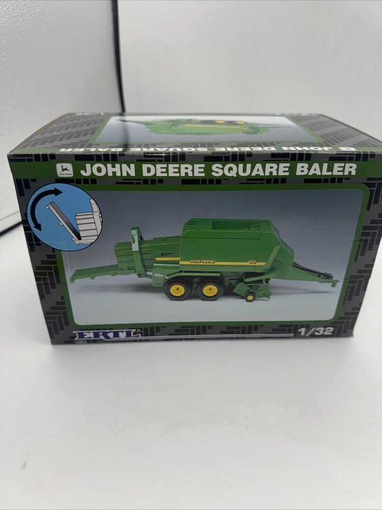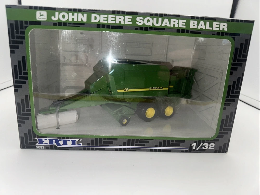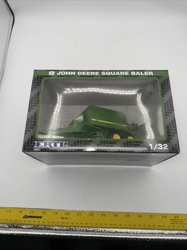 This vintage 1997 Ertl 5082 diecast 1:32 John Deere 100 Farm Tractor Square Baler is a great addition to any toy and hobby collection. The tractor is made of high-quality diecast material and has a scale of 1:32. It features a square baler and is made by the trusted brand Ertl. The vehicle type is a tractor and the brand is John Deere. This toy is perfect for kids and adults alike who love farm vehicles.